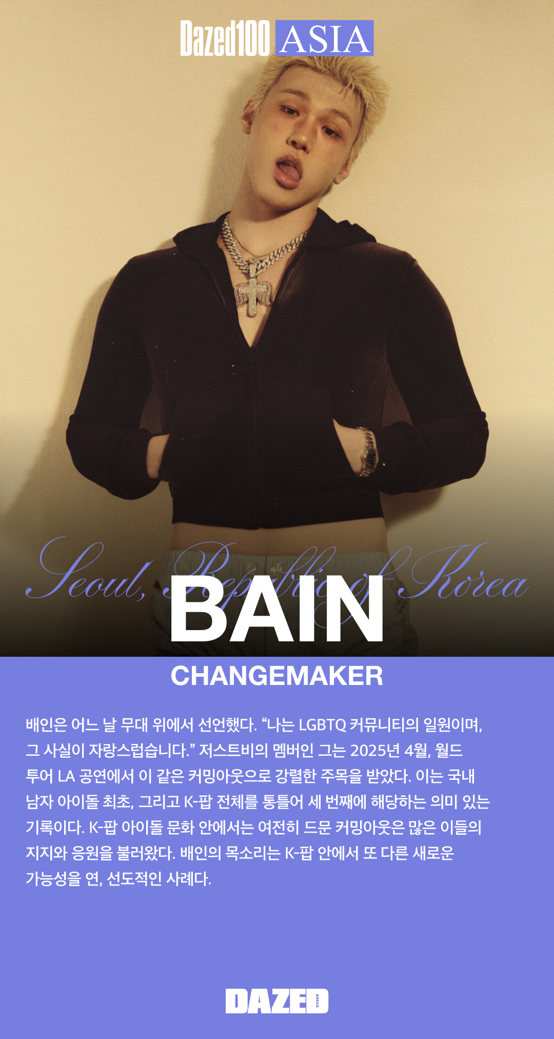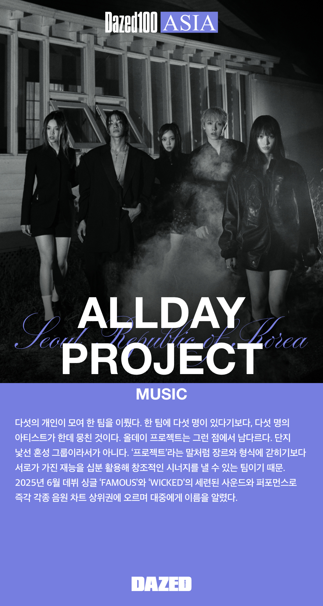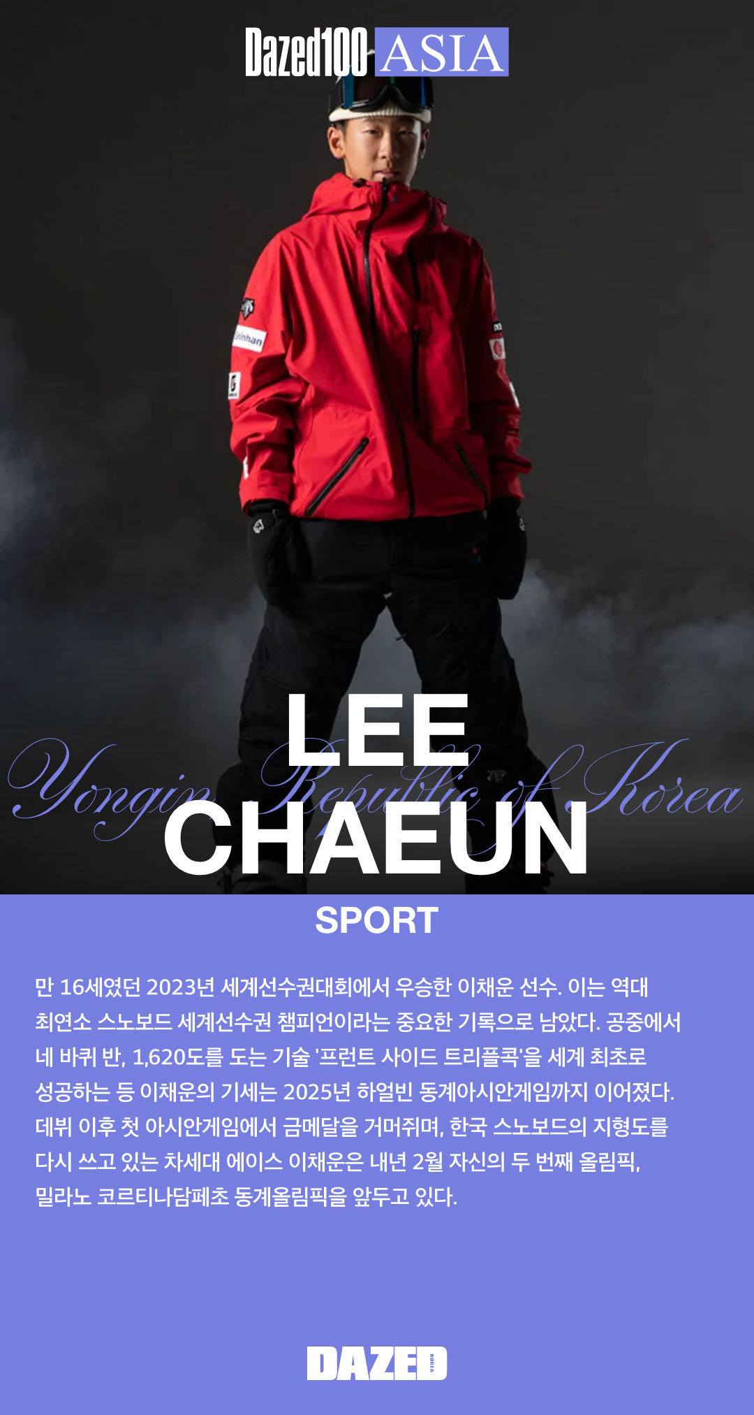 Dazed 100의 열 번째 챕터. 글로벌 리스트와 미국, 중동에 이어, 마지막으로 Asia 100을 공개한다. NEWS #Dazed100은 ‘유스 컬처’의 중심에서 지금을 바꾸고 있는 얼굴 100인을 기록해온 프로젝트다. 2025/12/12 Text DAZED KOREA