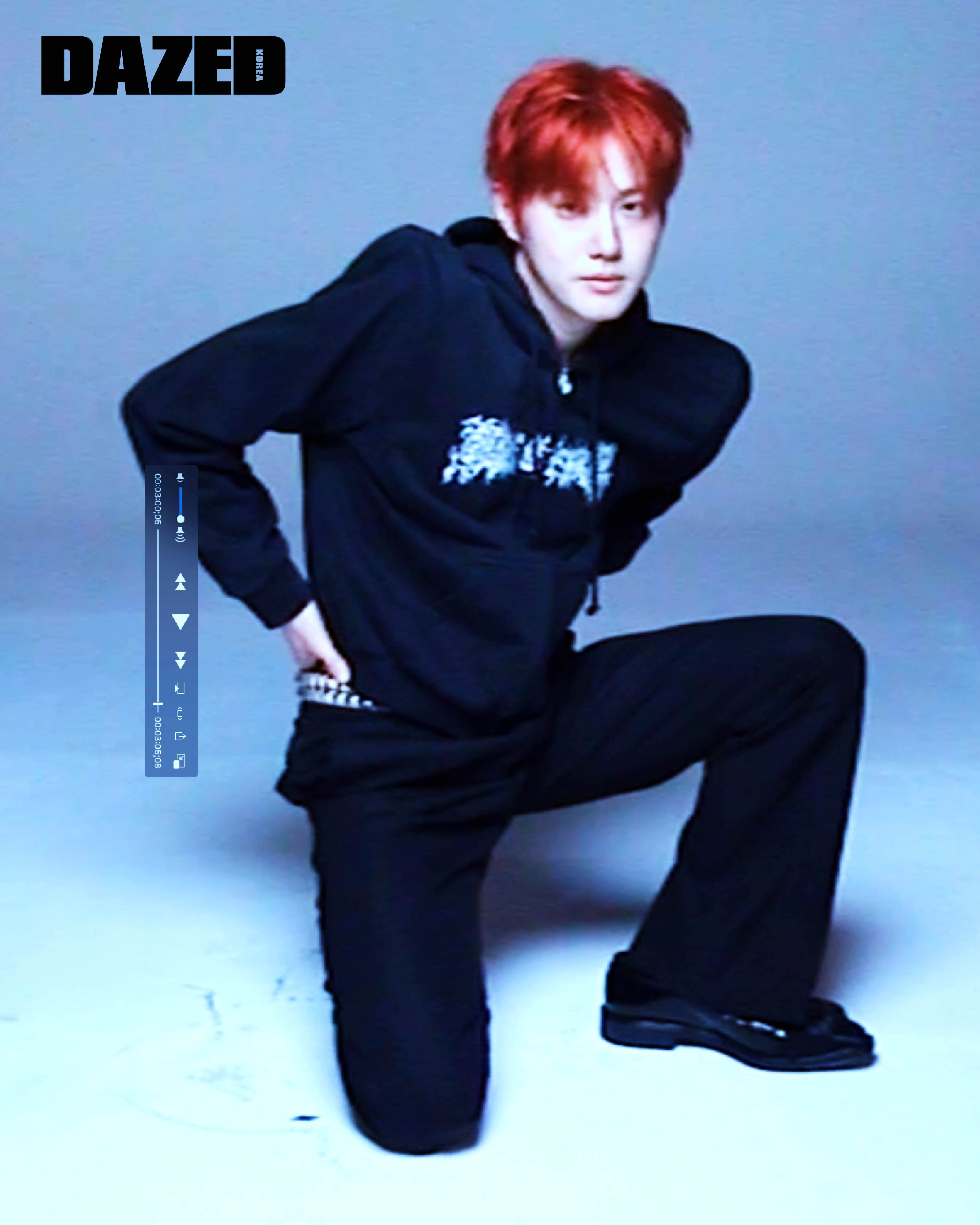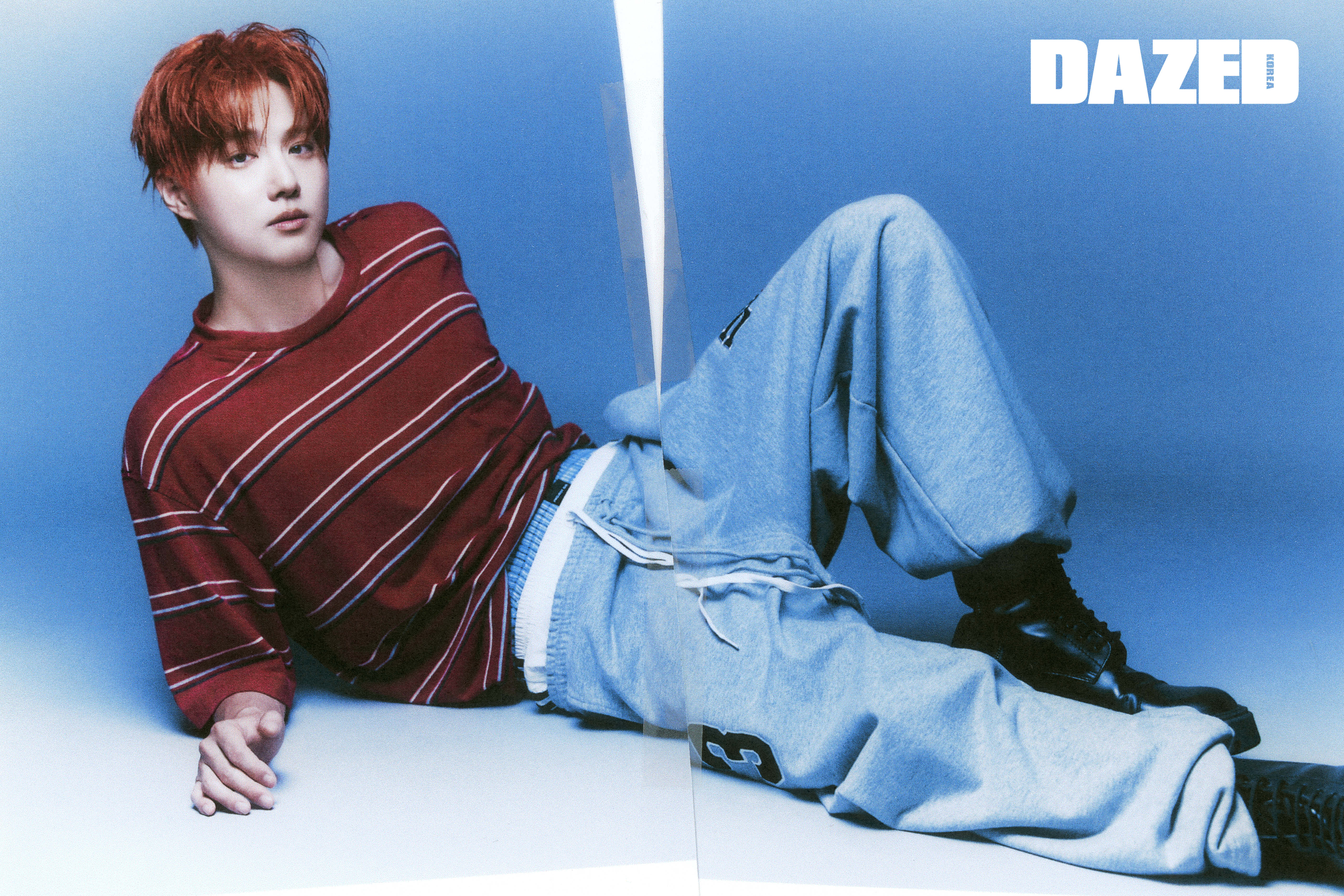 정말요. 마침 촬영 시작 전 사진가가 영국 런던에 살고 있는 소년의 반항기를 가득 담아보자고 했잖아요. 오늘 화보에서 평소 수호가 지닌 젠틀한 이미지를 완전히 뒤집어 봤는데, 어땠어요?