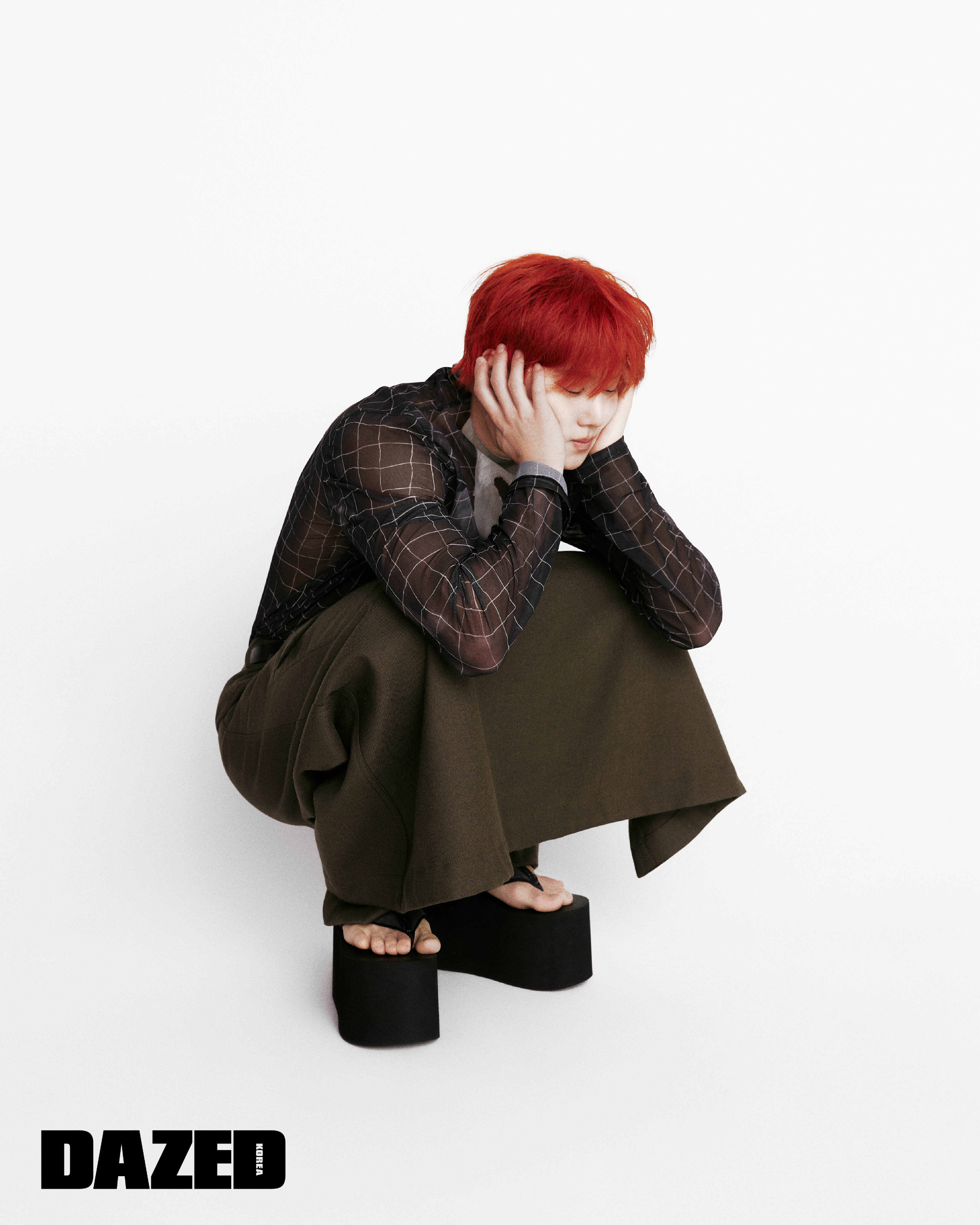 컴백을 맞아 색다른 변화를 주고 싶어 오렌지 컬러를 택했어요. 브릿팝을 좋아하고 추구하는 편이라 영국 소년 같은 느낌을 의도했달까요. 영화 〈해리 포터〉시리즈의 ‘론 위즐리’처럼 엉뚱하고 독특한 느낌이 나지 않아요?(웃음)