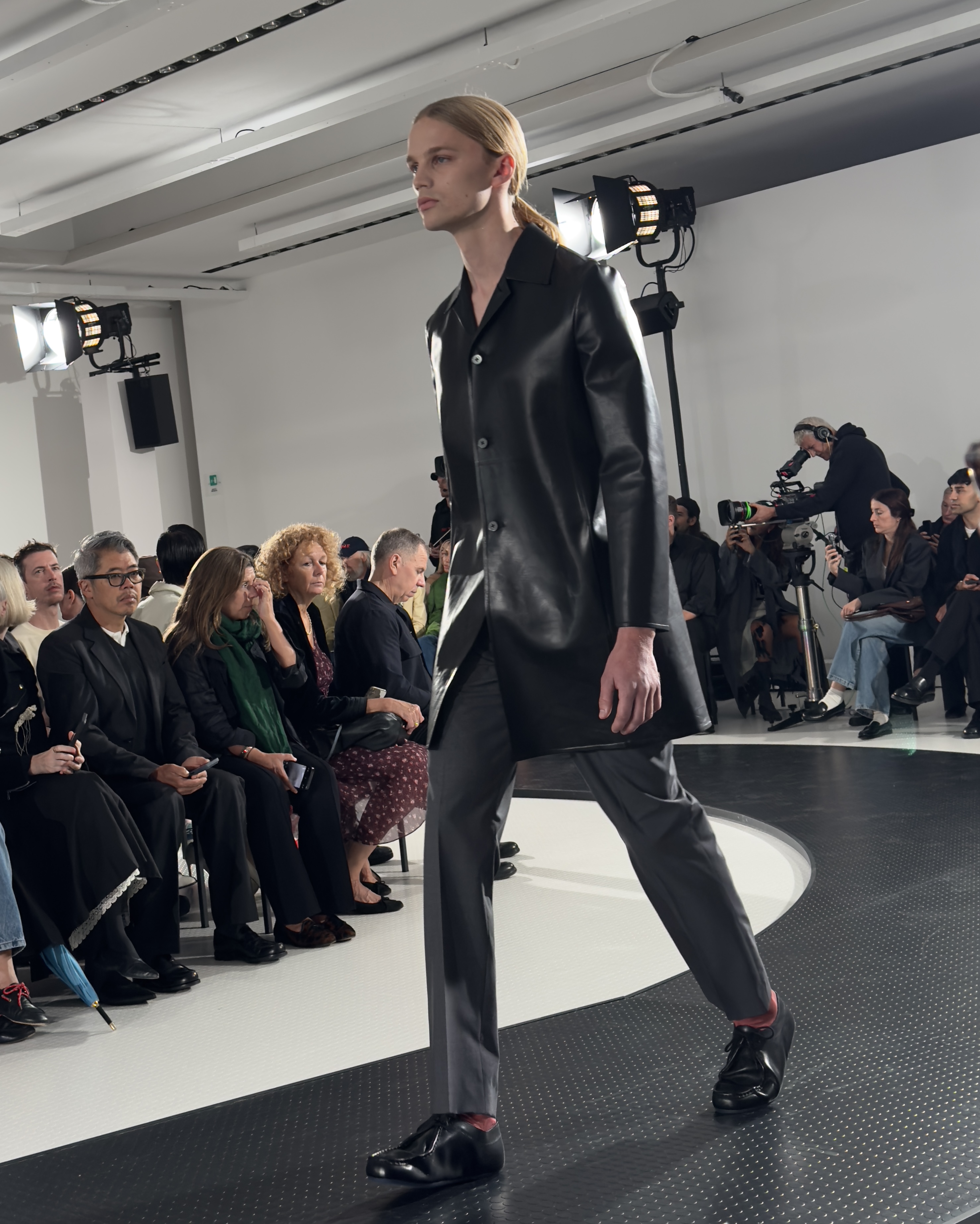 2024년 2월이었나, 밀란 어느 트램 창고인지 역에서 열린 마테오 탐부리니의 첫 토즈 쇼를 직접 봤다. 그 기억이 여전히 선명하다. 이른 아침이었는데 추적추적 비가 내려 밤처럼 어두웠다. 개인적으로는 사실 별 기대가 없었다. 그날의 첫걸음으로 안중에 없던 토즈를 다시 보게 됐다. 믿게 되었고 나아가 좋아하게 되었다. 딱 일 년 전 이맘때도 나는 토즈 쇼장에 앉아 있었다. 그 쇼를 보고 나와 아래와 같은 감상을 적었다.