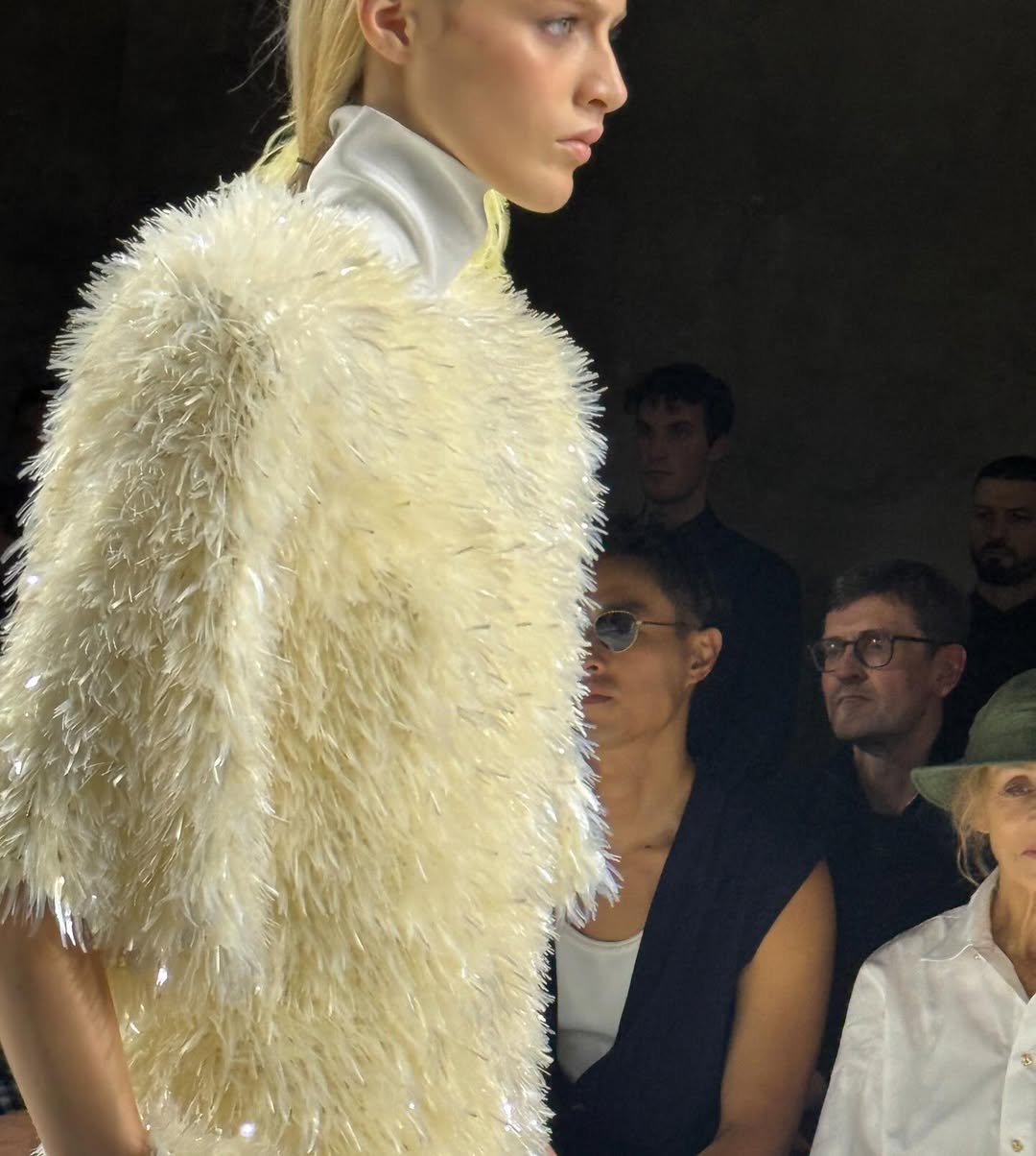 펜디의 쇼는 마치 유리잔에 담긴 노랑 레몬수 같았다. 표면은 단순해 보이지만, 안쪽에는 거품이 피어오르고 그 사이로 햇빛이 투명하게 굴절되었다. 실비아 벤투리니 펜디가 말한 ‘이중성’이라는 건 아마 그런 것이었을 거다. 한쪽에서는 무심히 흘러가고, 다른 쪽에서는 기묘하게 집요한 정밀함이 고개를 든다. 나는 그 균형을 음악 속 베이스의 떨림처럼 느꼈다.