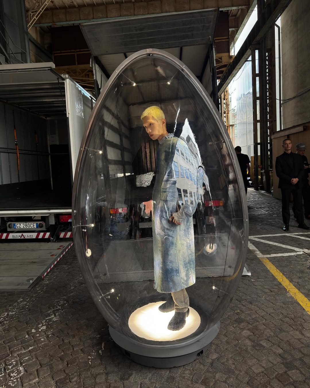 글렌 마틴스의 크리에이티브 디렉션 아래 ‘패션 민주주의‘를 꿈꾸는 디젤은 소수에게만 허락된 ’패션쇼‘ 대신 밀란 시민 모두가 함께 즐길 수 있는 ’게임‘을 선택한다. 알 속에 갇힌 디젤 소녀 소년들은 이곳 시각 오후 7시 30분부터 11시까지 밀란 시내 곳곳에서 디젤 에그 헌트 게임을 시작한다. 헌팅이 시작되면, 헌터들(누구나 가능)은 밀란 전역에 숨겨진 컬렉션의 룩을 안내하는 지도에 접속할 수 있다. 각 룩은 모델이 착용한 상태로, 거대한 투명한 에그 형태의 캡슐 속에 전시되며, 자율성과 자기결정이라는 메시지를 담아 도시 속에 모습을 드러낸다. 그러니까 디젤 에그 헌터 게임은 단순한 게임이 아닌 패션쇼를 경험하는 완전히 새로운 방식인 셈이다. 고백. 머리로는 대충 알겠는데 그래서 이 게임의 룰이 정확히 뭔지 여전히 아리송하다. 노화의 증거 같은 건가. 하지만 그게 뭐든 알을 깨고 세상에 나서는 일은 박수받아 마땅한 일일 것이다. 내친김에 등장한 밀키웅의 ’얼굴들’ 시리즈와 함께.