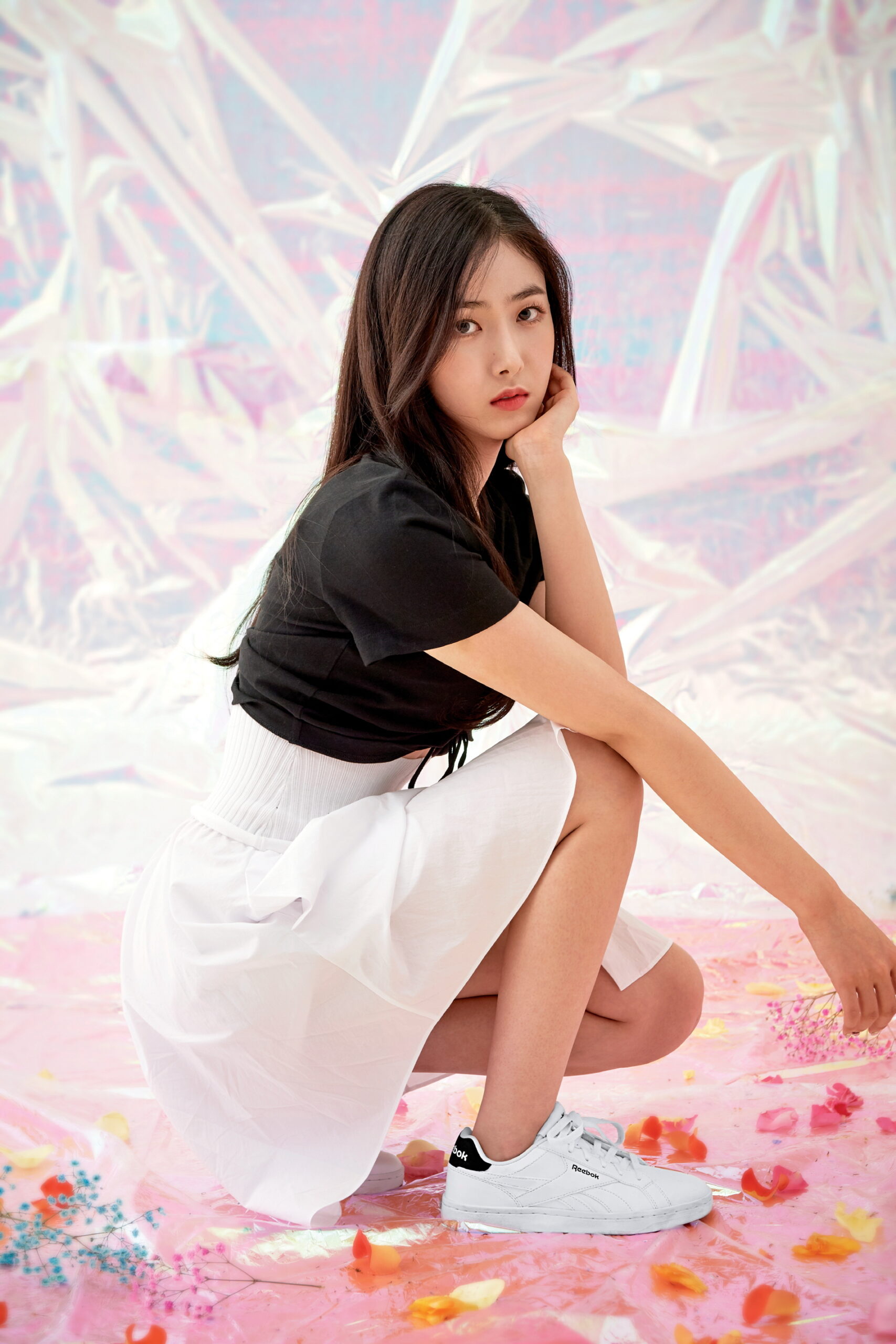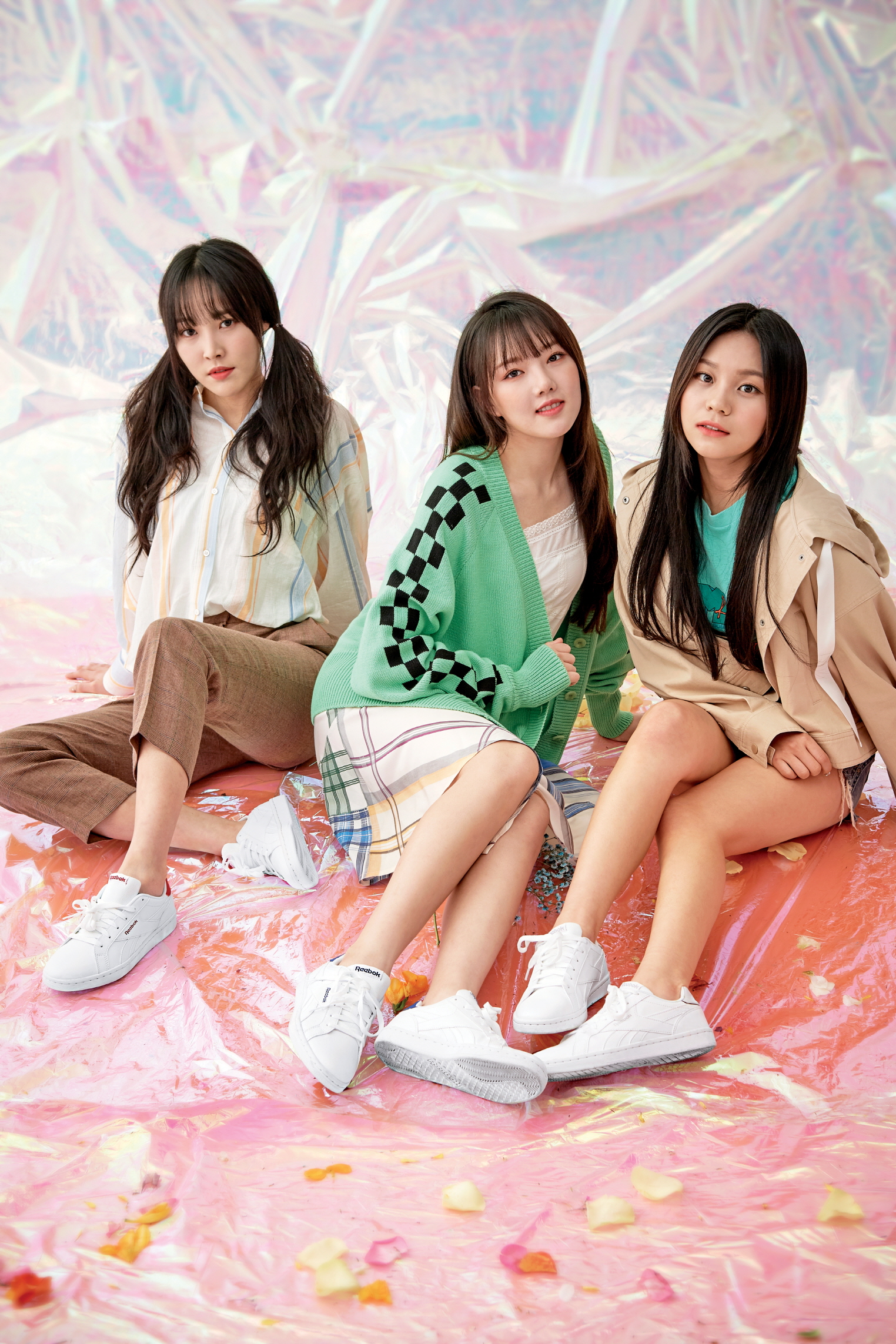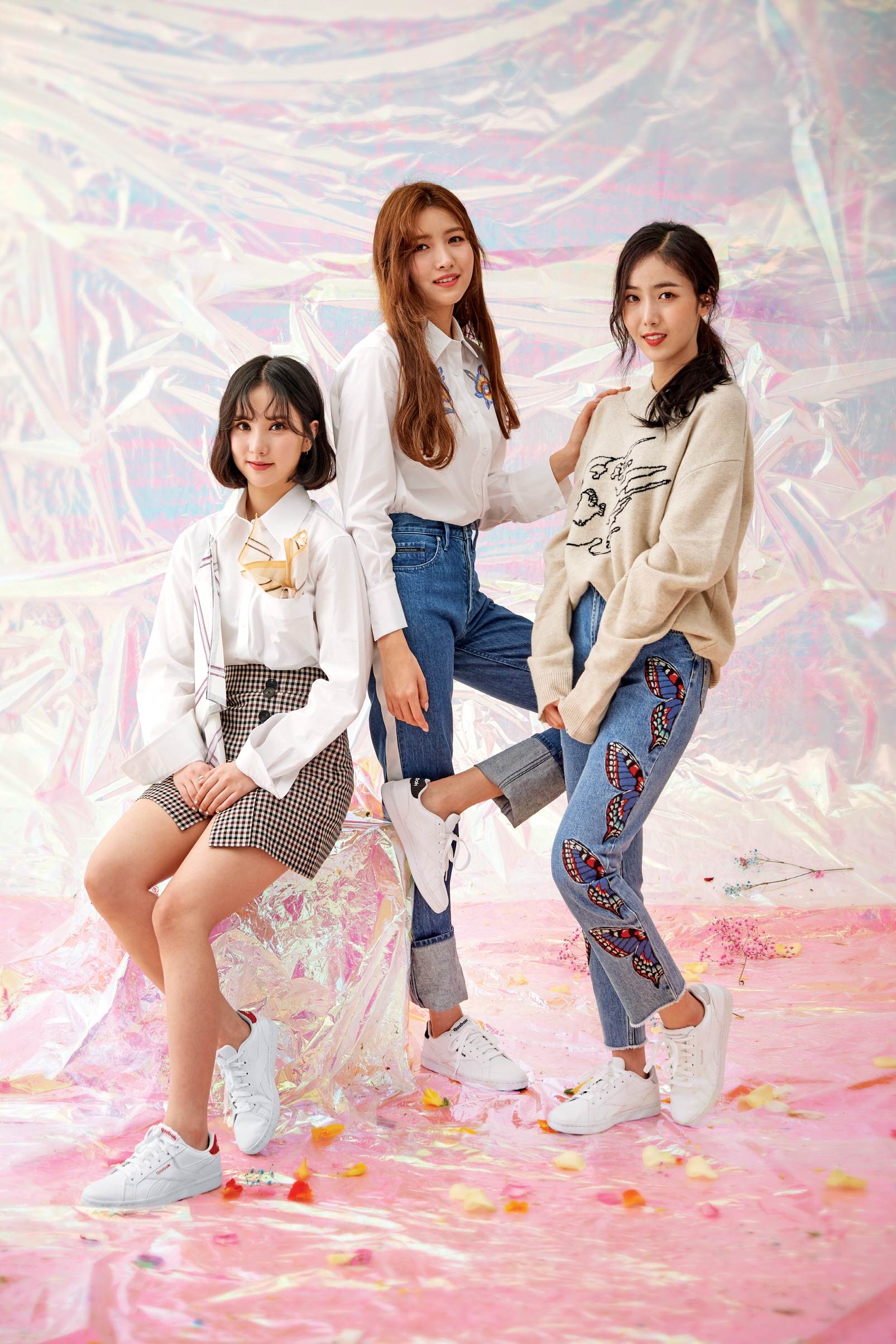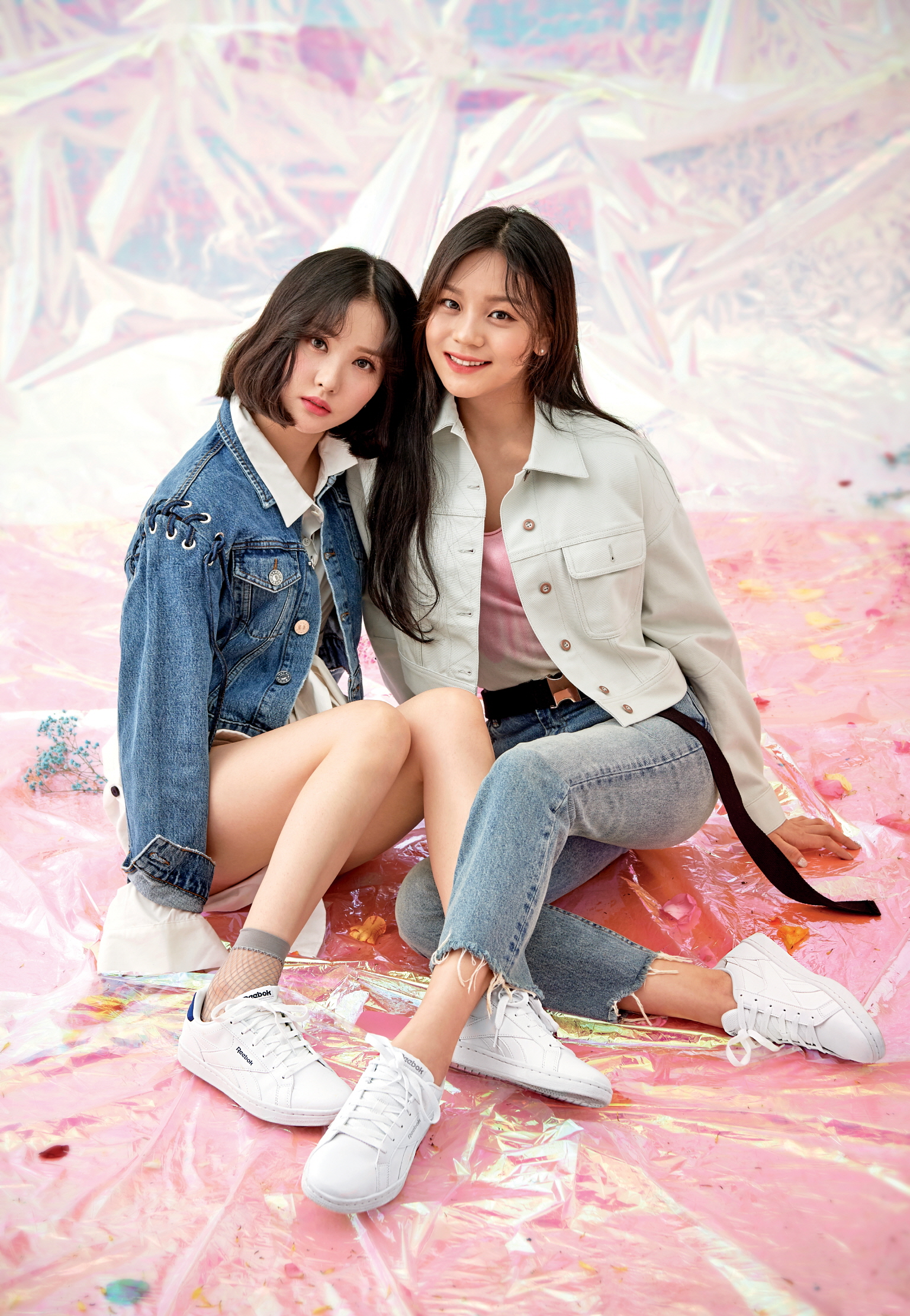소원과 유주가 신은 스니커즈는 모두 리복 컴플리트 2LCS(Reebok Complete 2LCS), 소원이 입은 데님 재킷은 끌로디 피에로(Claudie Pierlot), 데님 스커트는 쟈딕 앤 볼테르(Zadig et Voltaire), 유주가 입은 원피스는 아르마니 익스체인지(Armani Exchange).