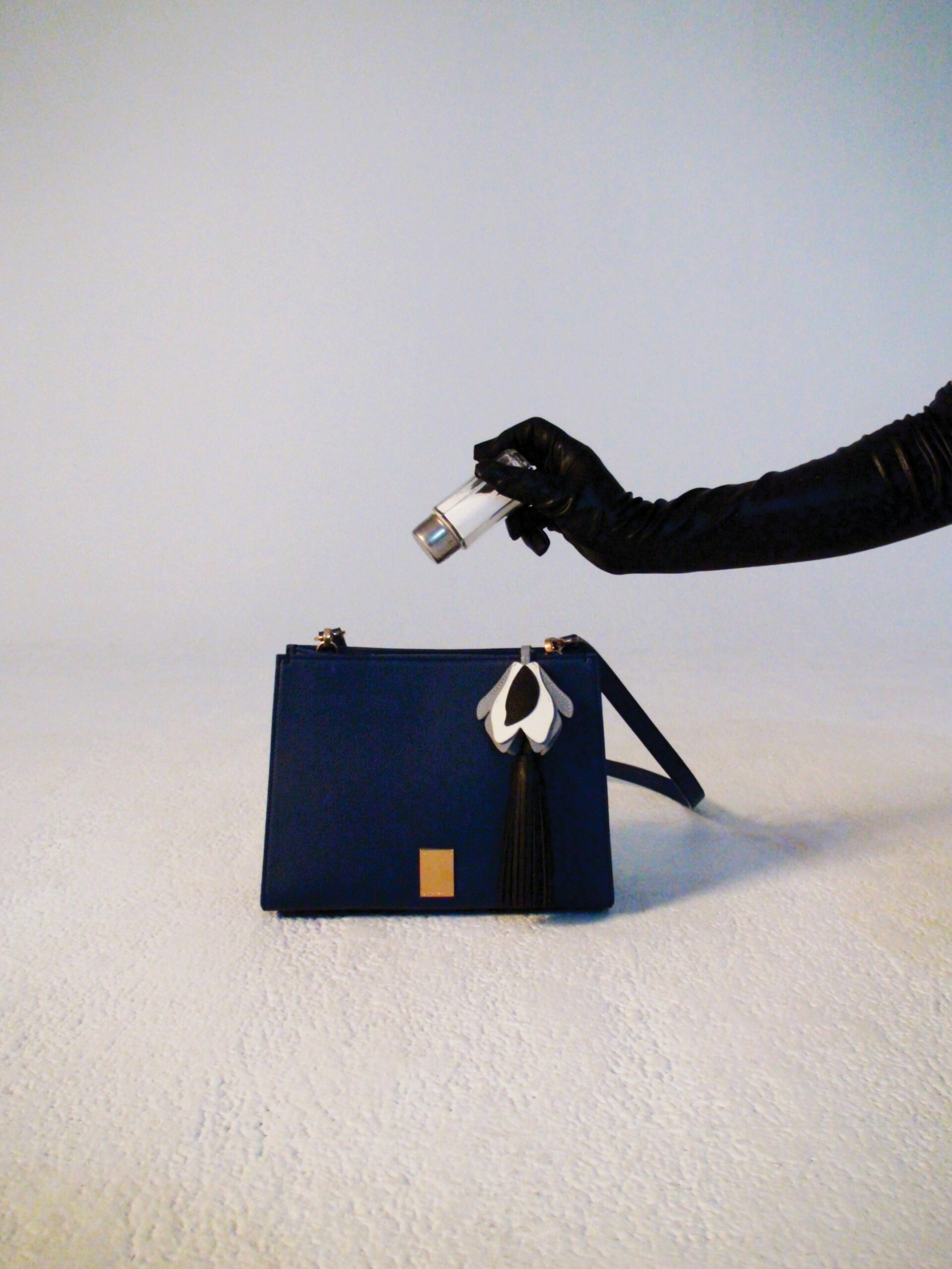 정직하게도 각진 네이비 숄더백은 쿠론(Couronne).
