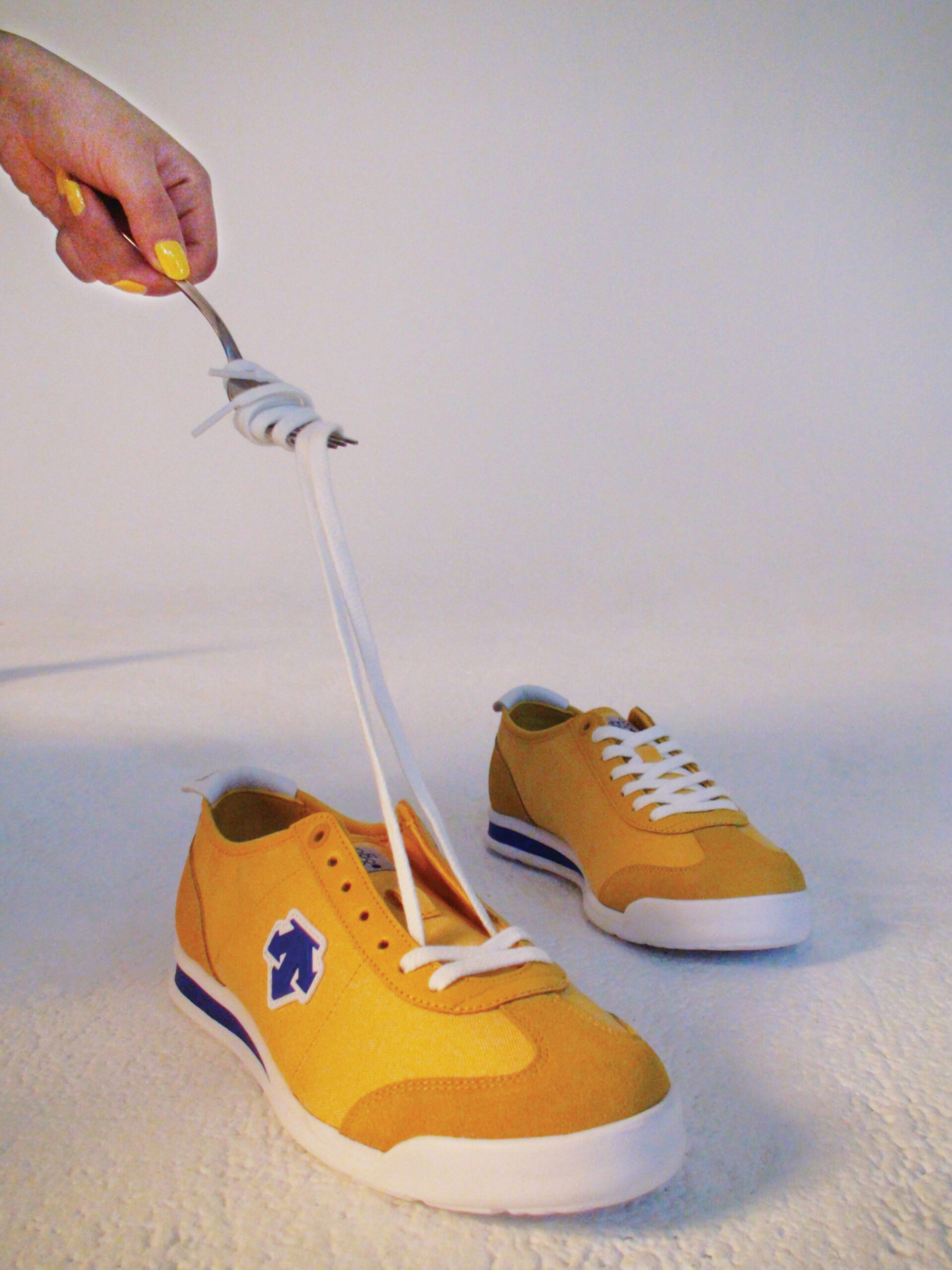 1980년 동계 올림픽 중 남자 스피드스케이팅 전 종목을 석권한 에릭 하이든의 스케이트화에서 영감을 받아 디자인한 샛노란 스니커즈는 데상트(Descente).
