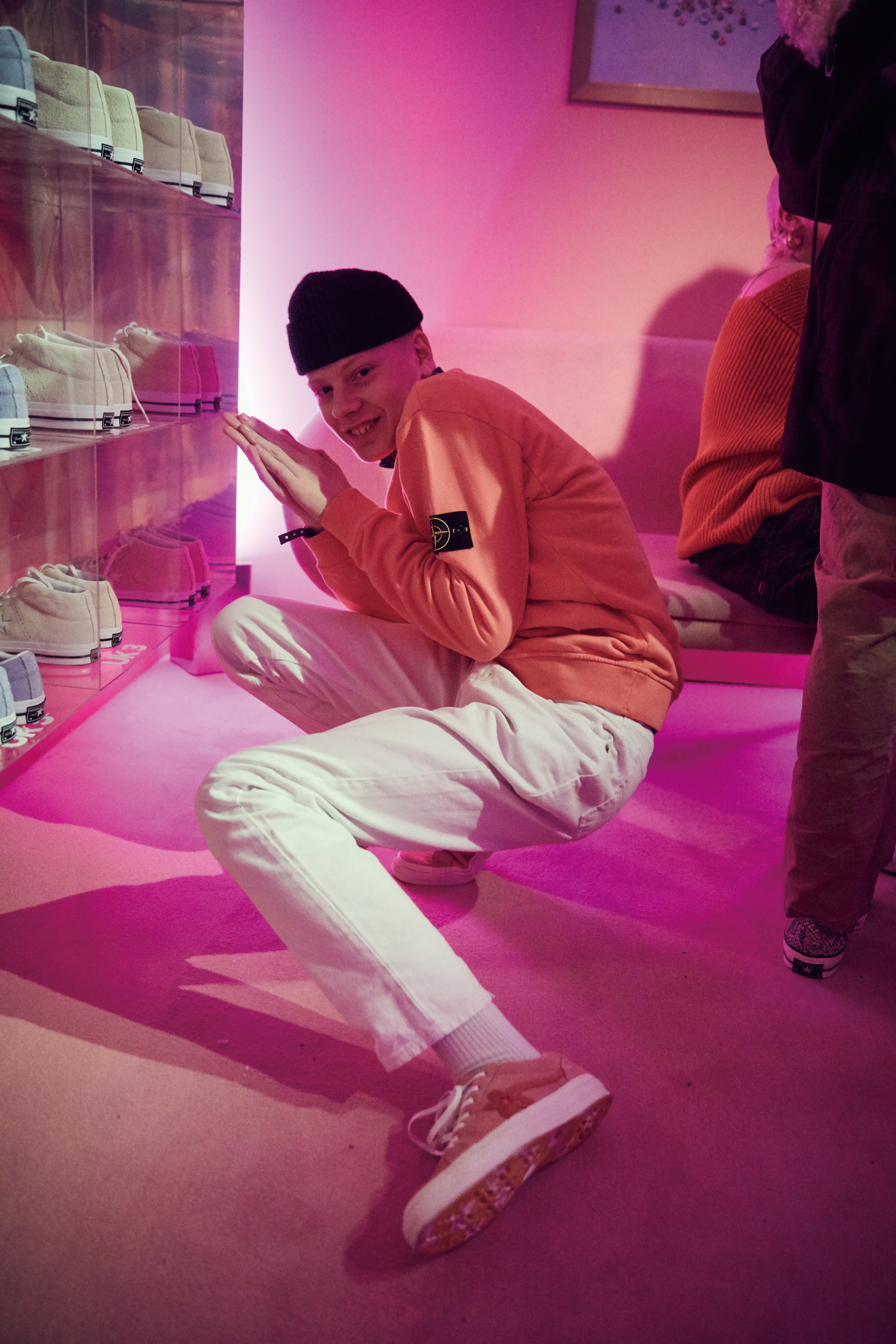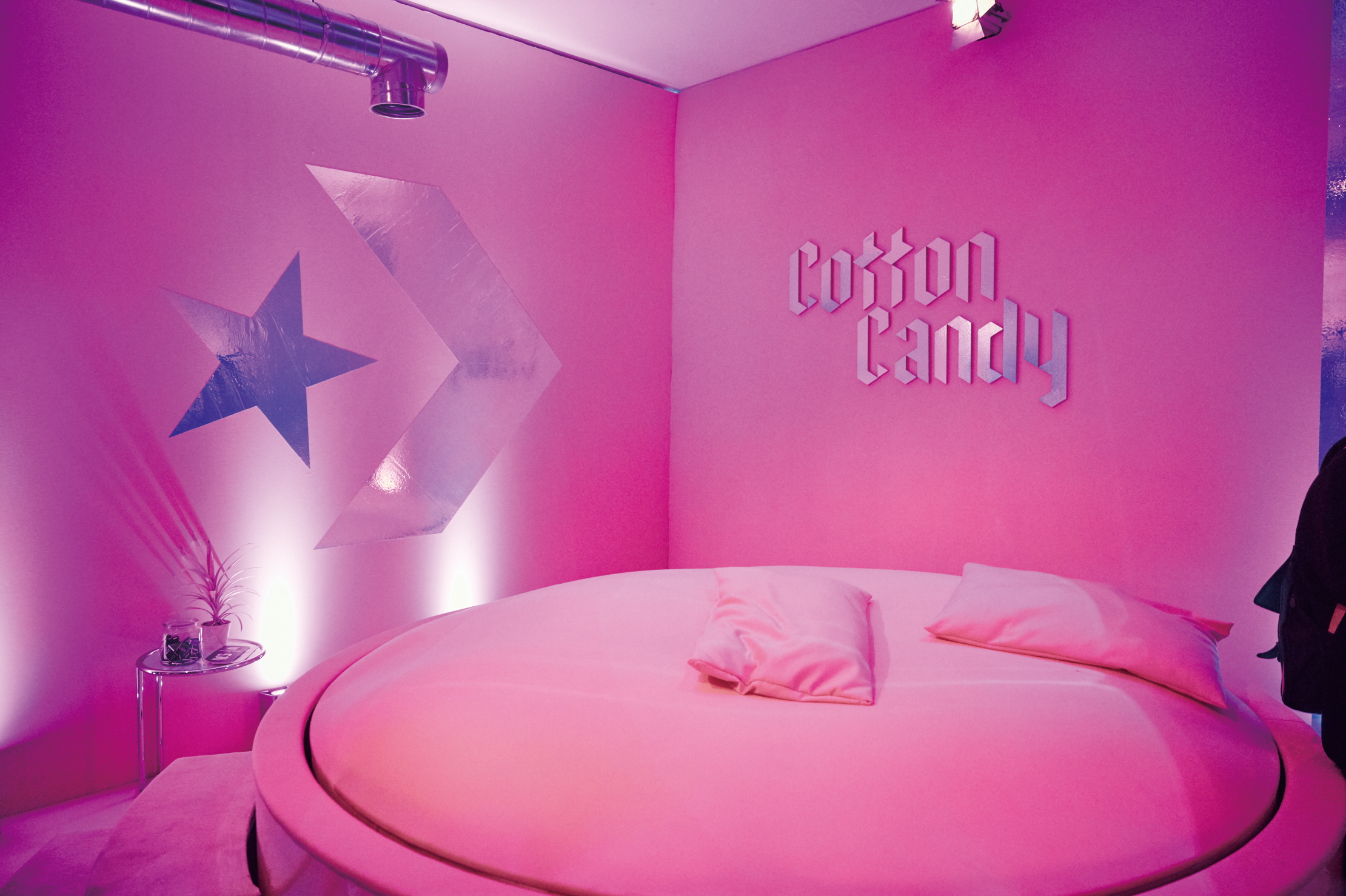 ‘체크인’을 하면 북적거리는 로비를 지나 원스타 프리미엄 스웨이드 룸에 들어서게 된다. 달콤한 향이 코끝을 자극하는 방에는 핑크와 에메랄드, 블루, 베이지처럼 솜사탕 같은 원스타 프리미엄 스웨이드가 줄지어 놓여 있다. 1970년대 초기 모델의 클래식하고 빈티지한 매력을 그대로 살린 뒤 봄의 컬러로 다시 태어난 것들이다. 이어지는 객실은 컨버스의 컨스. 컨스는 스케이트보드 신과 선수들을 위한 라인으로 방 안에선 런던에서 주목받는 스케이트보드 선수 제이미 플랫(Jamie Platt)의 다큐멘터리 영상을 상영 중이었다. 복도를 지나 계단을 오르면, 원스타가 여러 브랜드와 협업한 아카이브를 만나게 된다. 스투시와 네이버후드, 언디피드 등 1990년대부터 계속된 협업의 결과물이 한자리에 모여 있었다. 그리고 바로 옆 공간에는 에이셉 몹을 대표하는 에이셉 네스트가 방문객을 반갑게 맞아주었다. 그는 자신이 심취해 있는 20세기 중반의 문화와 트렌드가 반영된 빈티지 가구와 전자제품으로 방을 꾸미고, 원스타 운동화에도 이런 취향을 고스란히 담았다. 겨자색 코듀로이 소재와 검붉은 원스타 조합은 1950년대풍의 빛바랜 가구를 떠올리게 했다. 그가 말하길, 컨버스 원스타는 세상의 모든 소재를 활용해 창작할 수 있는 자유로운 운동화라 했다. 어떤 공식이나 제약이 없는 것, 그게 바로 컨버스 원스타의 지향점이다. 이외에도 스톡홀름 출신의 래퍼 ‘영린(Yung Lean)’, 뉴욕 스트리트 패션 신에서 널리 알려진 ‘메이드미(Made Me)’, 그리고 지난 11월호 표지를 장식한 타일러 더 크리에이터 라인까지 원스타가 끊임없이 변화하고 있음을 아주 그냥 원 없이 보여줬다. 지하 런드리 룸에서는 혁오의 공연이 준비 중이었다. 이른 아침부터 유스 컬처에 관한 토크쇼가 시작됐고, 오후에는 이란 풍의 워크웨어를 전개하는 디자이너 파리아 파르자네와(Paria Farzaneh)의 스크린 프린팅 티셔츠 만들기 프로그램도 진행했다. 작지도 크지도 않은 그곳은 혁오의 공연을 보기 위해 몰려든 방문객으로 가득 차 있었다. 실제 호텔의 런드리 룸처럼, 호텔 내 그 어떤 공간보다 활기차고 빠르게 회전하는 기분이 들었다.