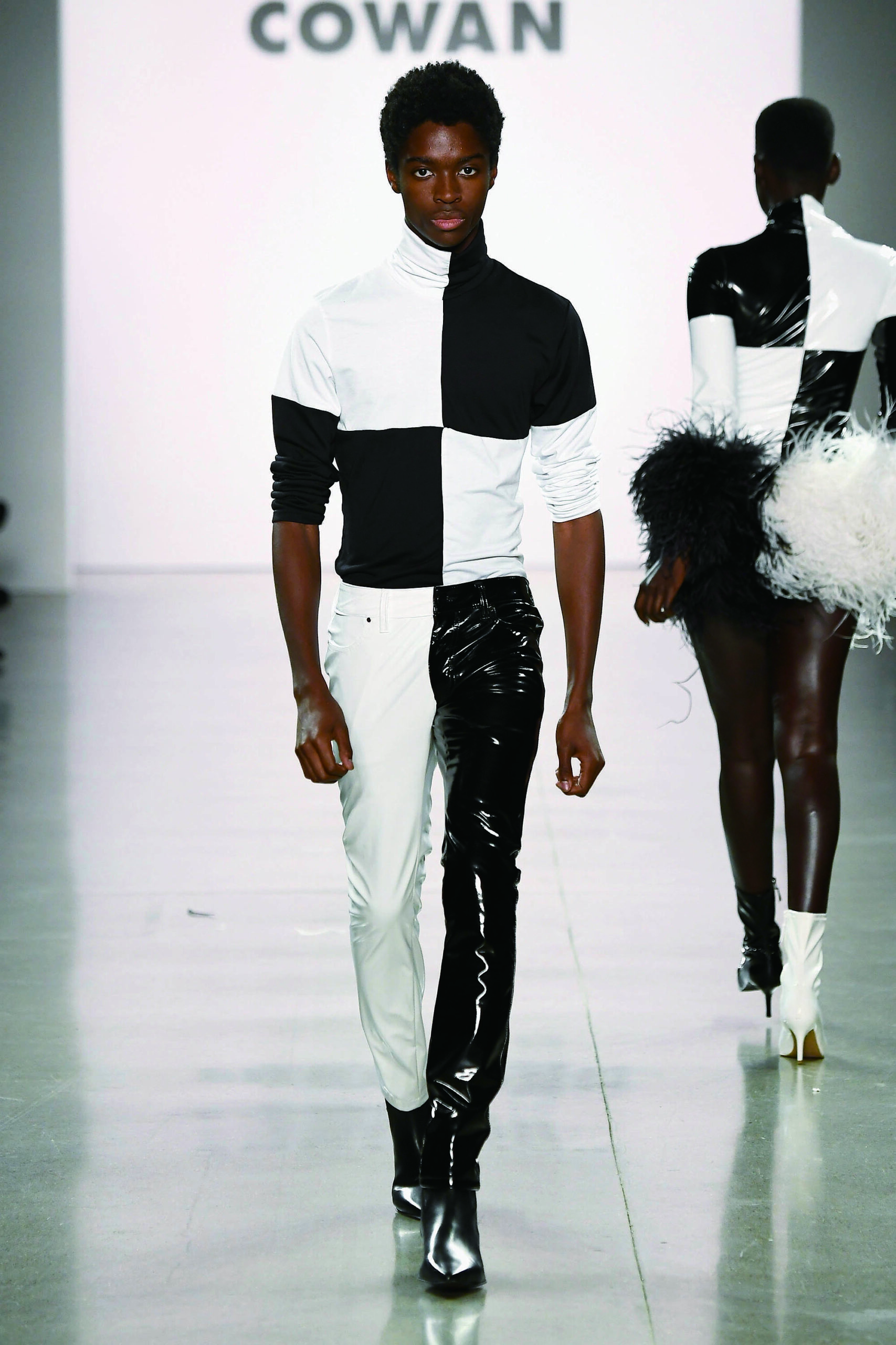 이번 컬렉션에 남자 모델 두 명만 등장했다. 한 모델은 캐주얼했고, 또 다른 모델은 글래머러스했다. 극적인 대비가 인상적이었다. 당신이 생각하는 남성복의 힌트인가?