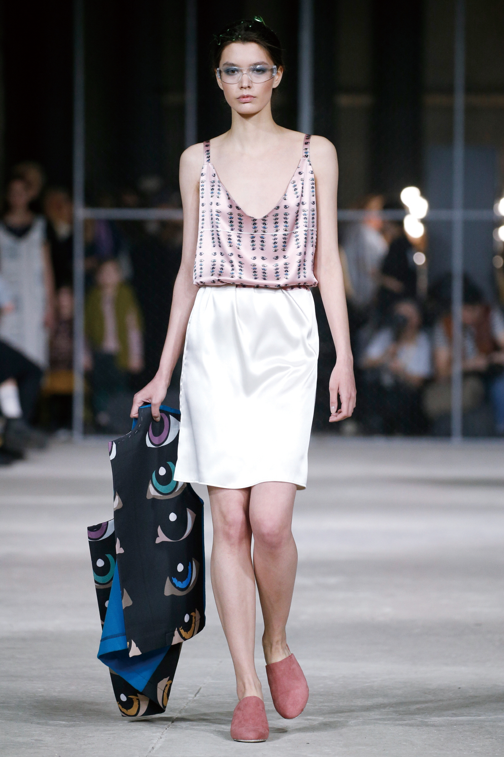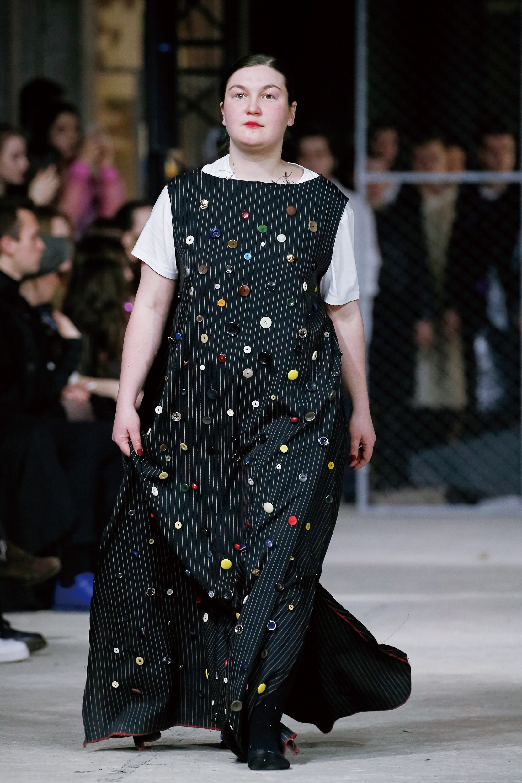 모양새였다. 기본을 잘 지킨 정제된 실루엣과 과하지 않은 위트가 조화를 이루니, 기성세대와 유스 사이의 간극을 적절히 지키는 재야의 고수 같다 할까. ‘Anastasia Dokuchaeva’는 현재와 미래를 아울렀다. 프런트 로에는 셀로판지로 만든 사이파이(Sci-Fi) 선글라스가 놓여있었고 런웨이의 모델들은 모두 이 선글라스를 쓰고 등장했다. 미래 행성의 아바타 같은 모델이 걸어 나왔는데 반대로 옷은 웨어러블하면서 동시대적이어서 더욱 생경했다. 선글라스를 활용한 재미난 컬렉션 중 또 하나인 ‘ZA_