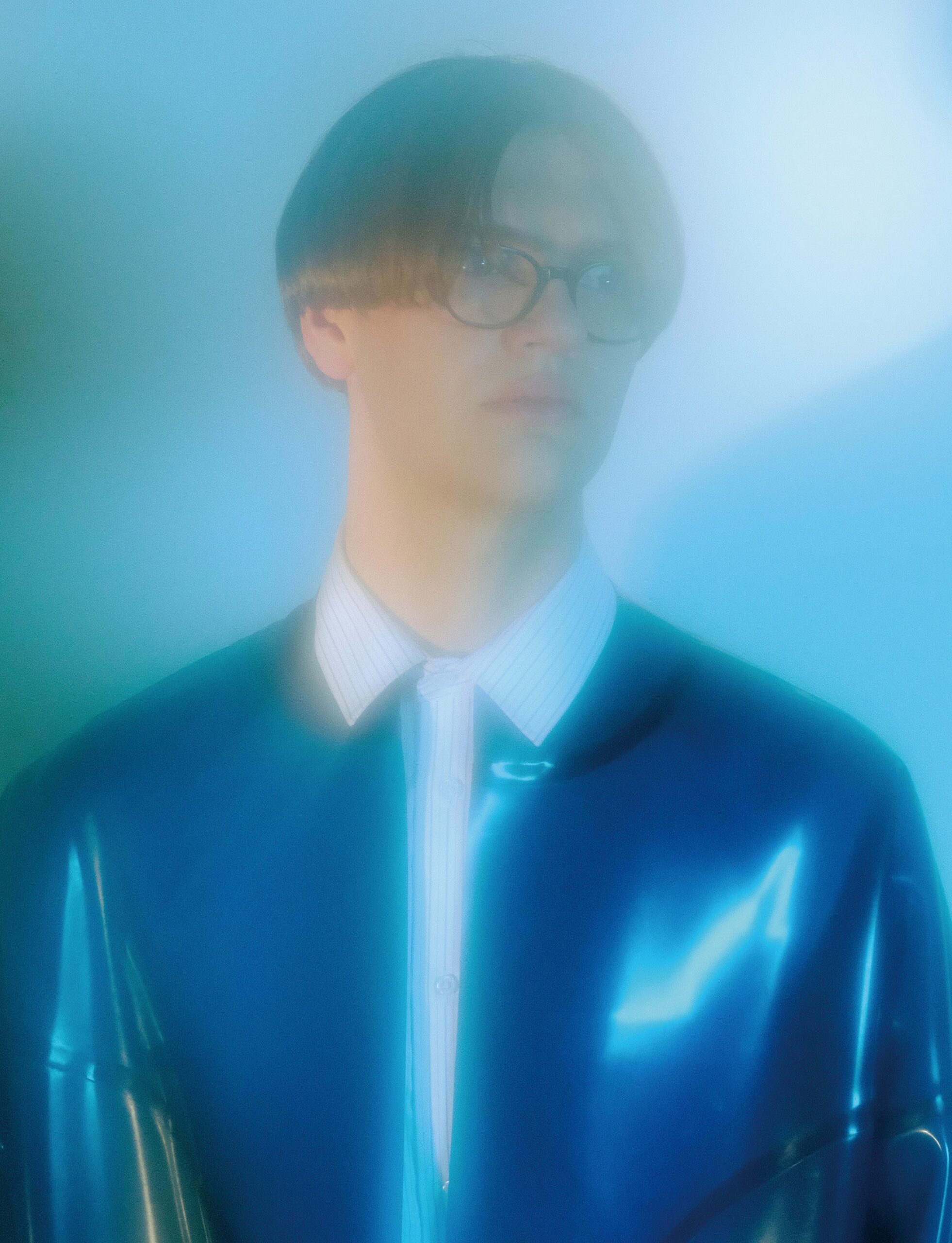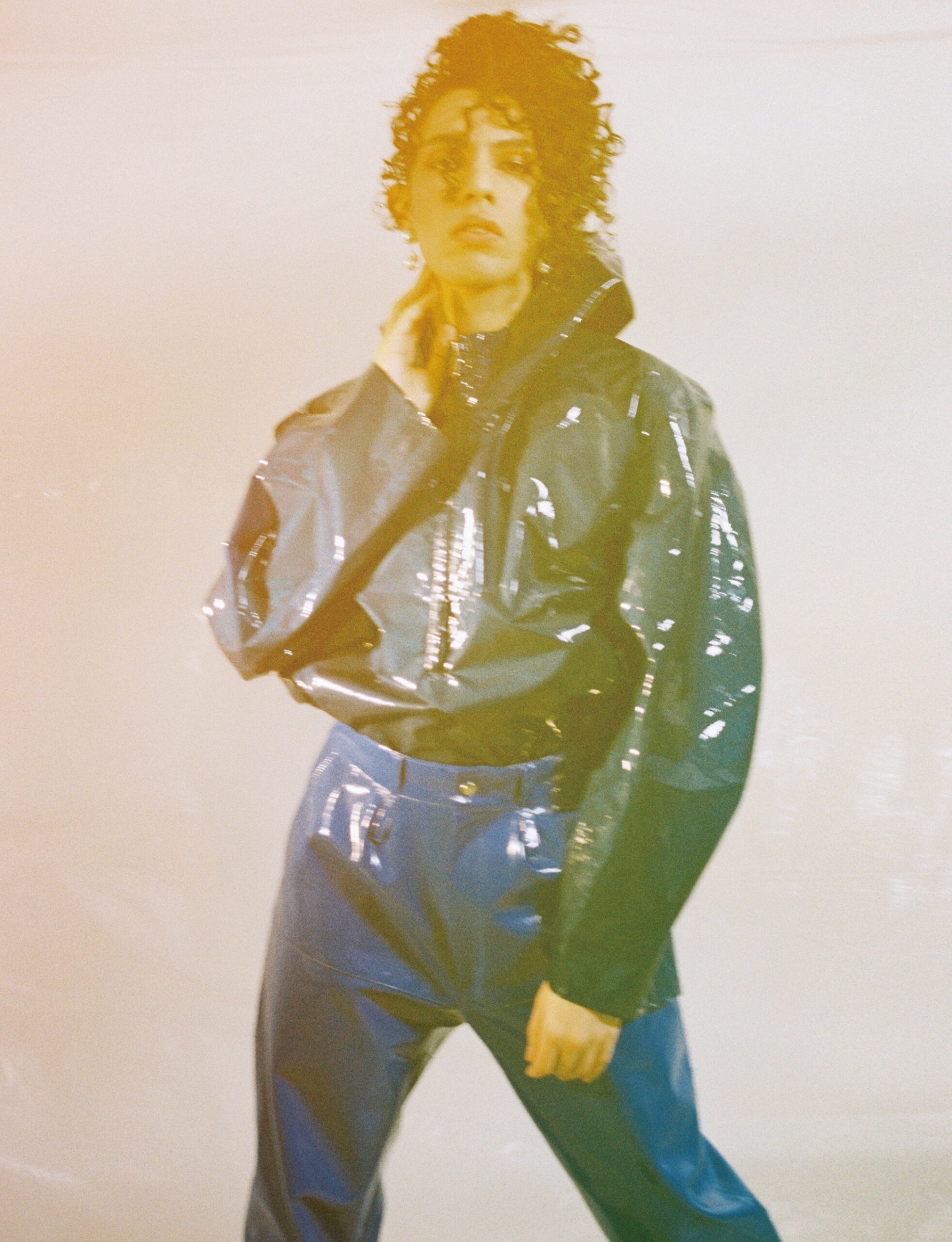 바이닐 재킷은 질 샌더 by 스타일밥(Jil Sander by Stylebop), 바이닐 팬츠는 지엠비에이치(GmbH).