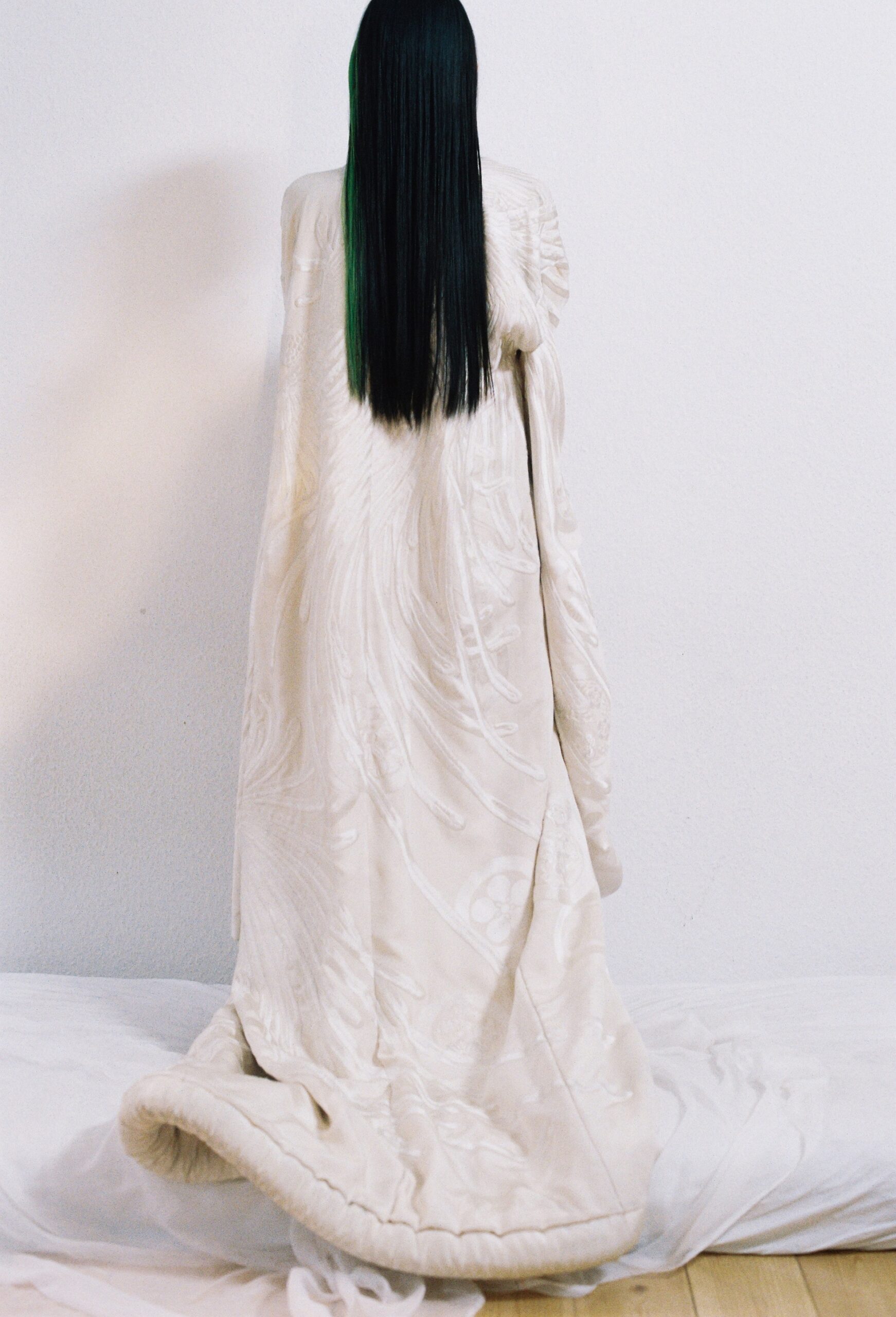 맥시 코트와 슈즈는 블레스(Bless), 보디슈트와 장갑은 플로리안 마떼(Florian Mathe).