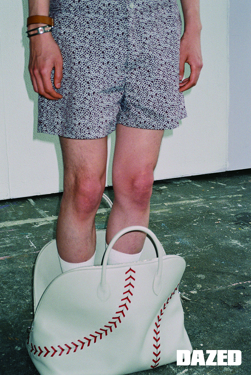 소가죽 두 쪽을 붉은 실로 이은 바느질이 중심부를 가로지른다. 단단하고 견고한 가죽과 특유의 정교한 마무리가 돋보인다. 에르메스 2018 S/S 컬렉션의 테마는 ‘스포츠’와 ‘놀이’다. 베로니크 니샤니앙은 오브제를 바라보는 즐겁고 유쾌한 시선에 주목했다. 이번 남성복 컬렉션은 아이코닉한 색상과 패턴에 다양한 스포츠 정신을 담아 에르메스만의 캐주얼 시크를 보여준다. 캐주얼 아이템이 주를 이뤘지만 절제된 실루엣과 고급스러운 소재를 써 여느 스트리트 패션과는 차별을 두었다. 특히 처음 사용하는 신소재 투왈브라이트가 아주 괜찮았다.