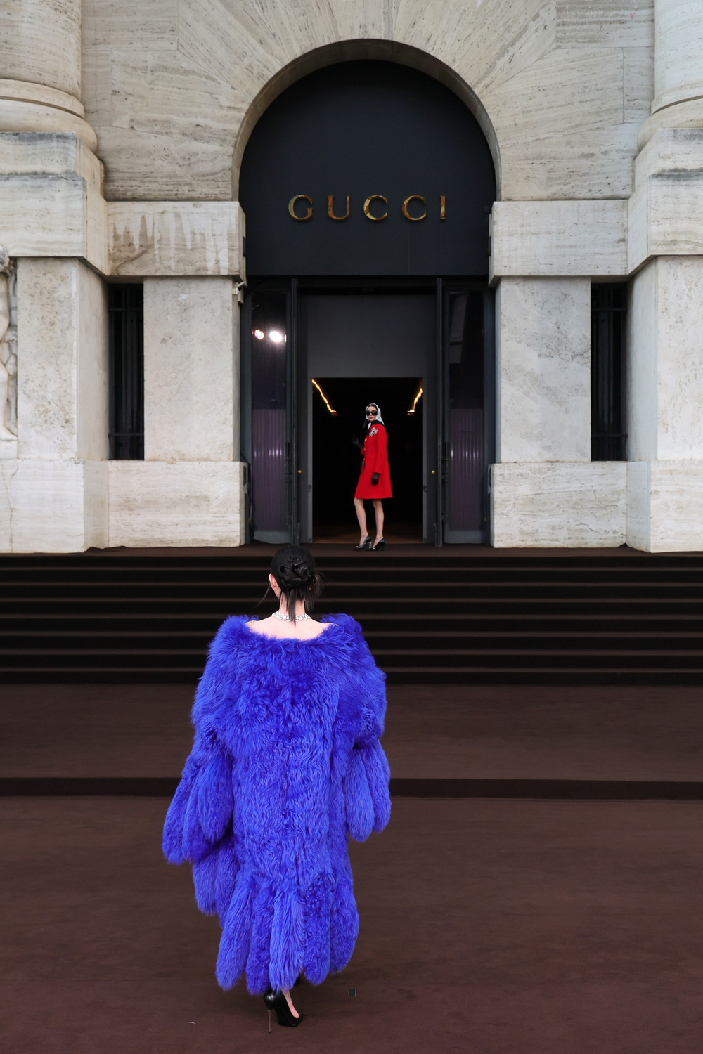 레드 컬러 재킷은 빈티지 제품, 블랙 실크 셔츠는 김서룡(Kimseoryong).