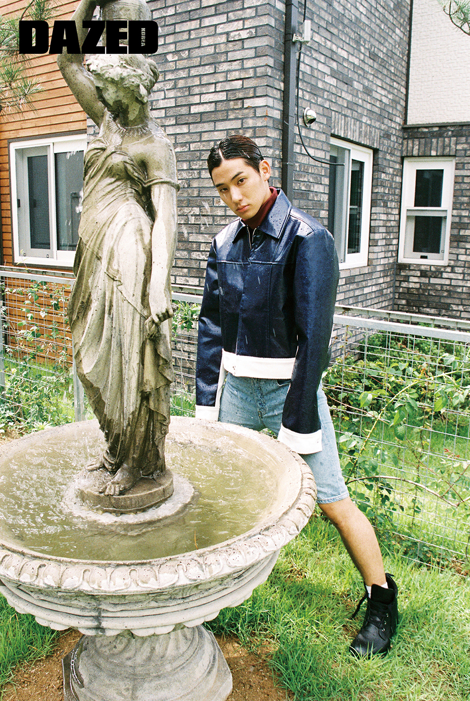 레더 블루종 재킷은 키준(Kijun), 데님 쇼츠는 리바이스(Levi’s), 부츠는 코스(COS), 버건디 컬러 터틀넥 톱은 캘빈 클라인 진(Calvin Klein Jeans).