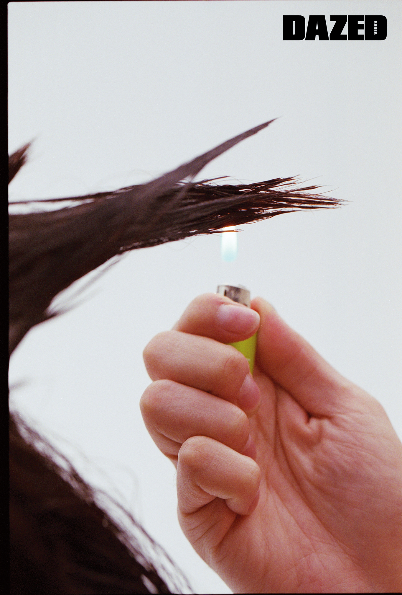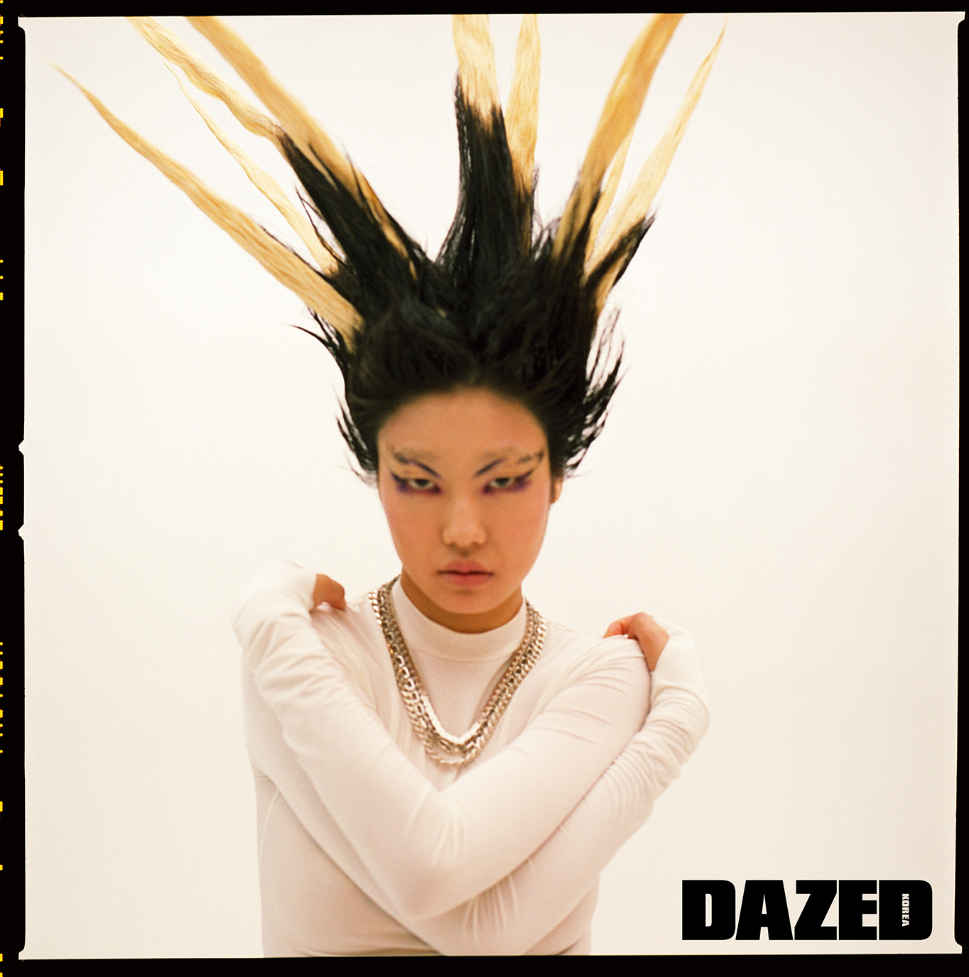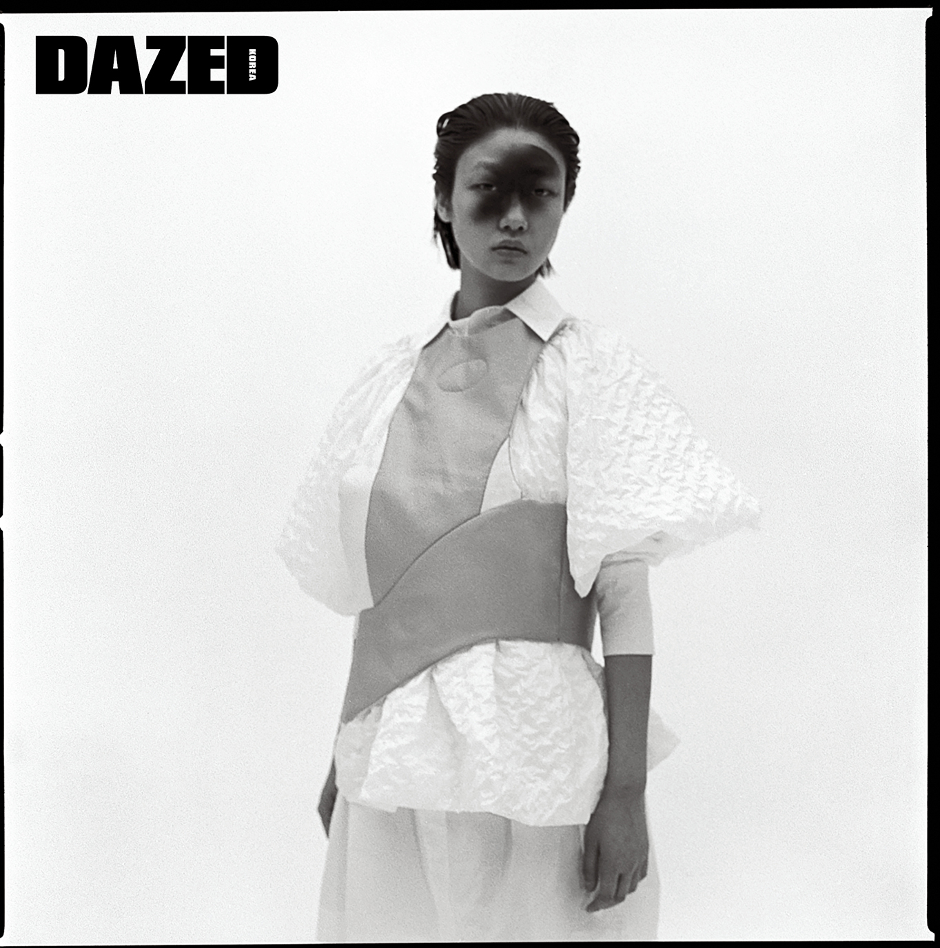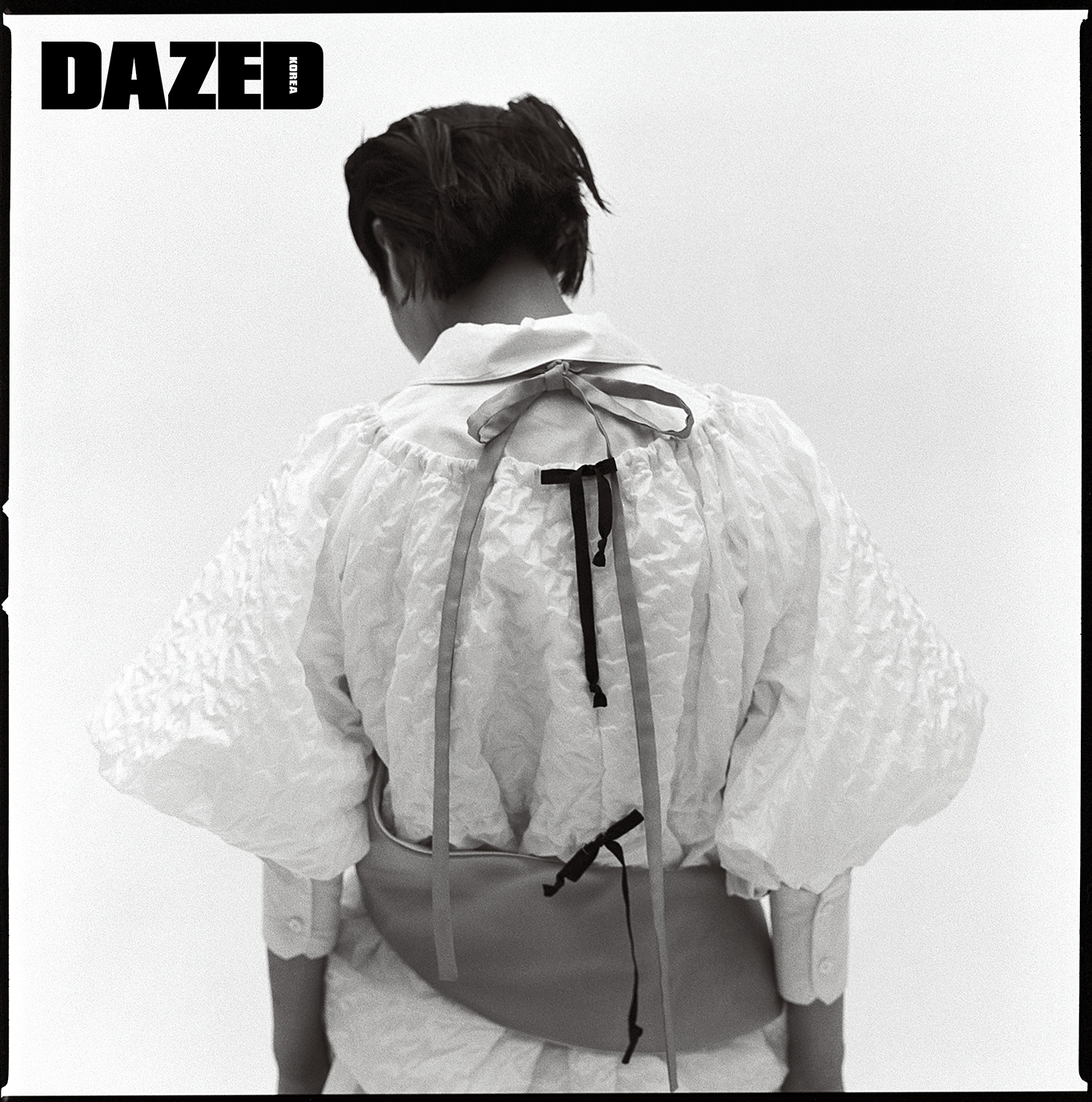 홀터넥 톱은 키준(Kijun), 드로스트링 블라우스는 세실 반센 by 한스타일(Cecile Bahnsen by Han Style), 이너로 입은 셔츠 원피스는 비비안 웨스트우드(Vivienne Westwood).
