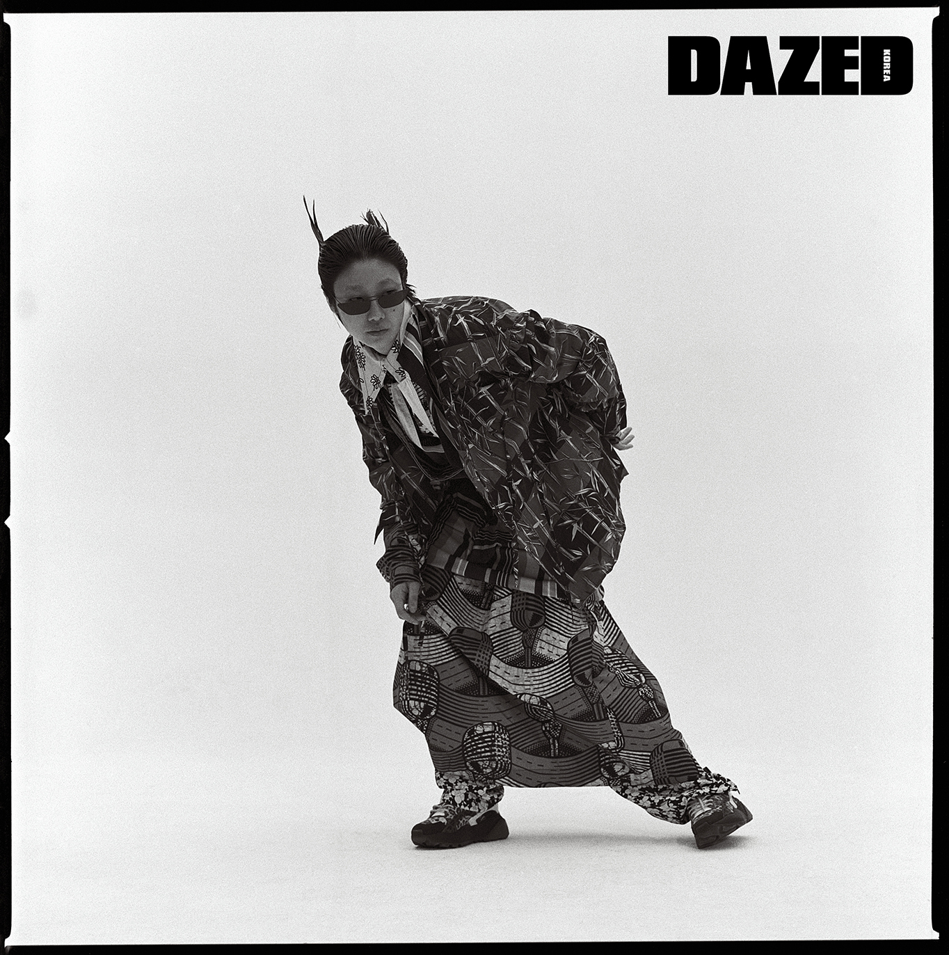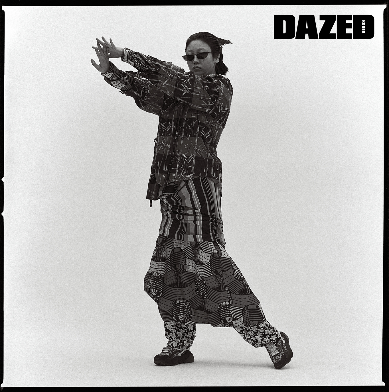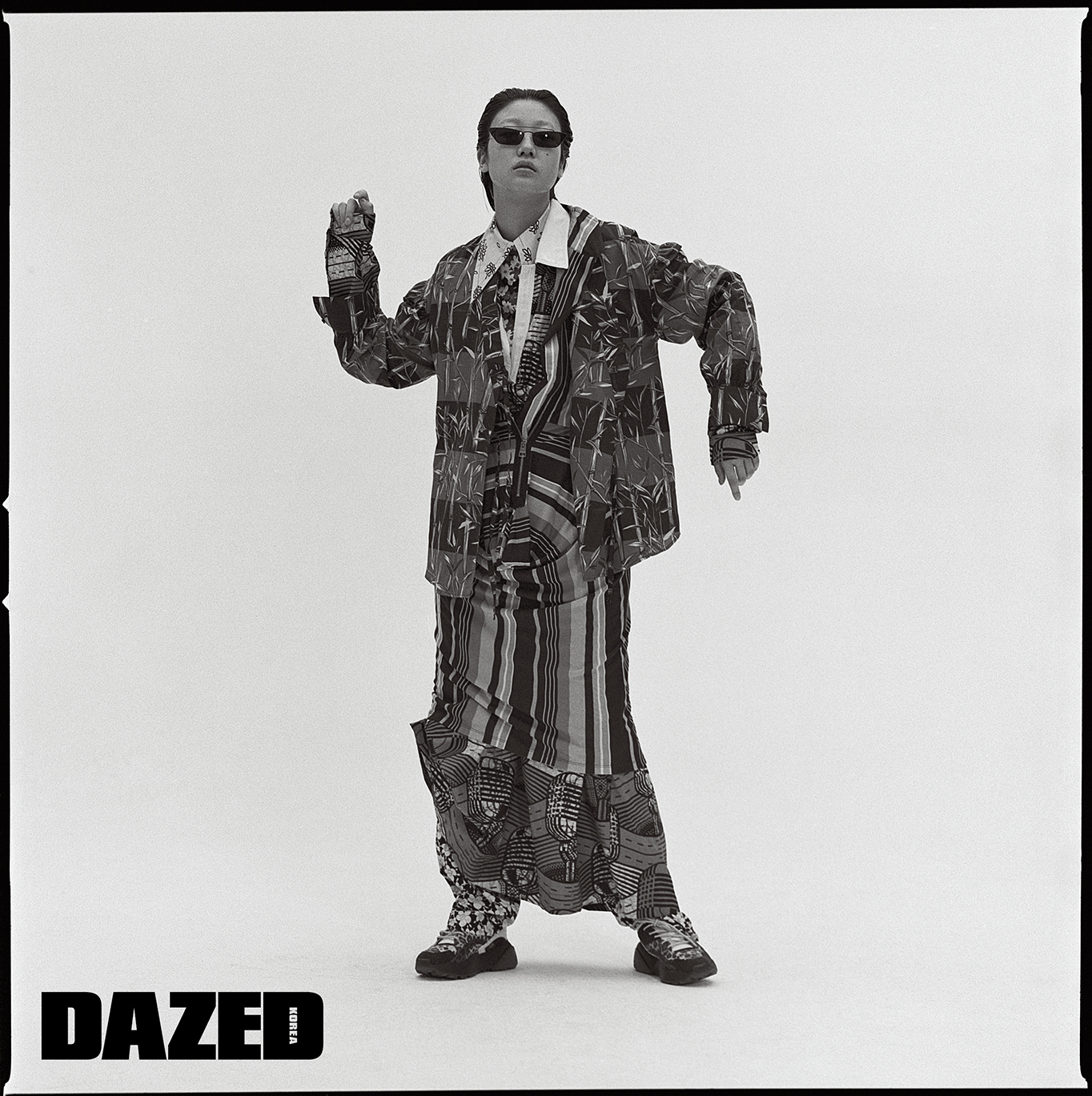 기모노 모티브 셔츠와 이너로 입은 플라워 패턴 티셔츠는 겐조(Kenzo), 스트라이프 저지 원피스는 JW 앤더슨 by 한스타일(JW Anderson by Han Syle), 럭비 셔츠 칼라를 장식한 패턴 드레스와 스니커즈는 스텔라 매카트니(Stella McCartney), 셔츠는 마르니(Marni), 팬츠는 조셉(Joseph), 선글라스는 프라다 by 룩소티카(Prada by Luxottica).