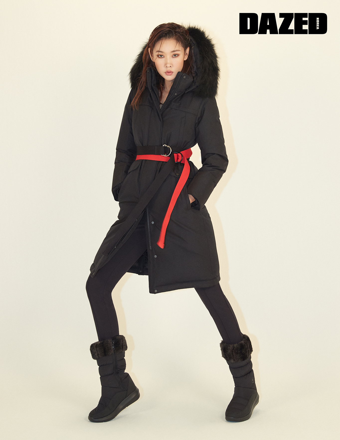 루브르(Louvre) 코트다운과 엘리샤(Elisha) 제깅 팬츠, COVER H 패딩 부츠는 모두 라푸마(Lafuma).
