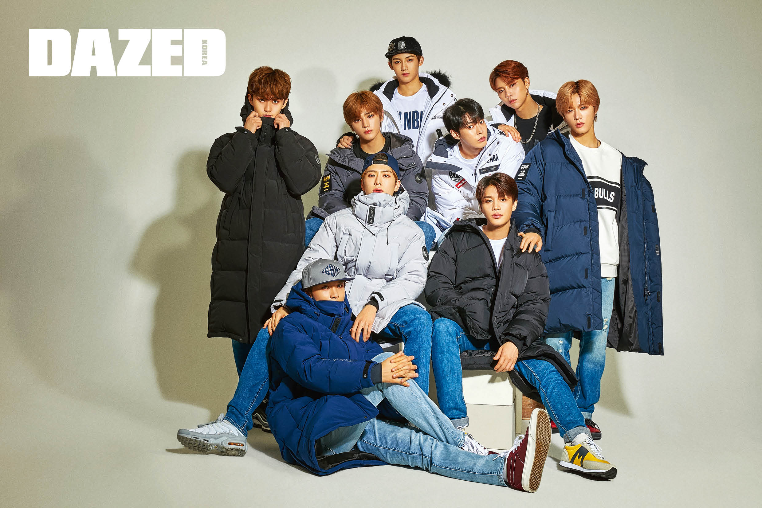 마크 입은 N184DW040P GSW 멀티 벤치 다운, 윈윈 입은 N184DW184P GSW 소매 포인트 구스 다운과 N185AP628P GSW 고주파 와펜 HYFLAT , 태용 입은 N184DW010P GSW 멀티 벤치 다운, 재현 입은 N184DW040P GSW 멀티 벤치 다운과 N185AP628P GSW 고주파 와펜 HYFLAT , 태일 입은 N184DW010P GSW 멀티 벤치 다운, 유타 입은 N184DW181P CHI 안감 체크 리버서블 다운, 도영 입은 N184DW183P WAS 스포츠 다운 점퍼는 모두 엔비에이(NBA).