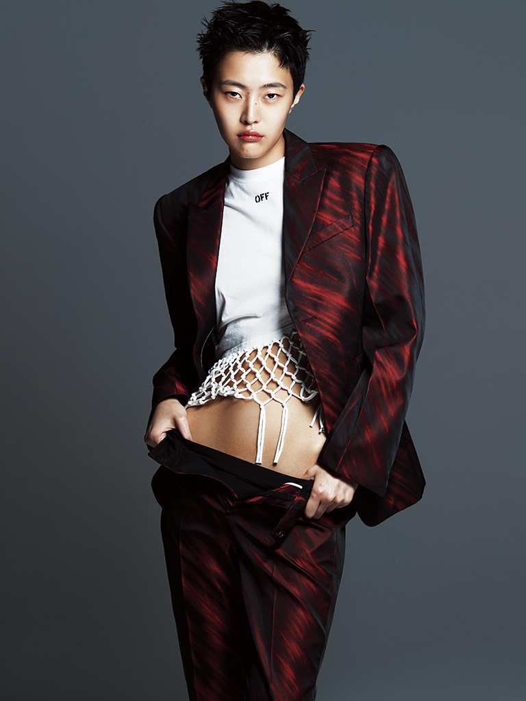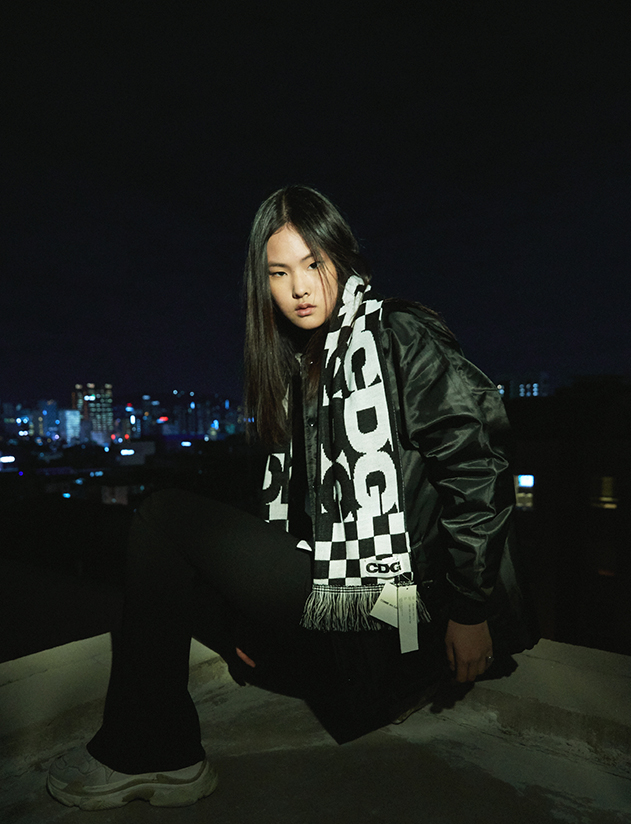 CDG의 뉴 컬렉션을 입은 다섯 명의 얼굴. 모델 앨리스, 아티스트 섭섭, 모델 나재영, 데이즈드 뷰티에디터 최소영 그리고 배우 김현목.