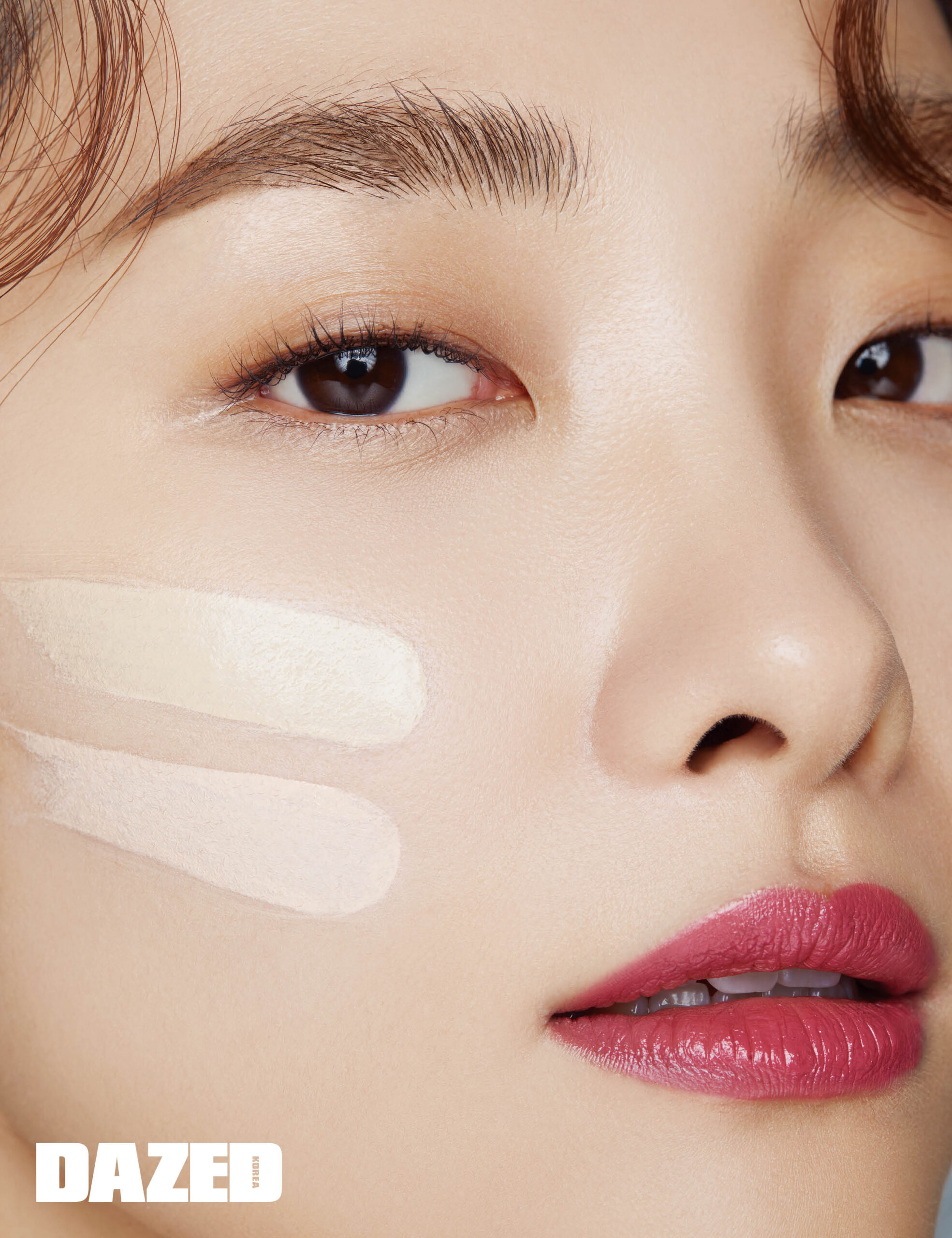 랑콤 프렙 & 하이드레이트 메이크업 베이스로 피부에 수분을 채운 뒤, 랑콤 뗑 이돌 울트라 웨어 파운데이션 PO-03으로 피부의 결점을 완벽히 커버한다. 그런 다음 랑콤 뗑 이돌 울트라 웨어 쿠션으로 광채를 더하고, 랑콤 그랑디오즈 워터프루프 마스카라로 속눈썹의 볼륨을 살린다. 랑콤 압솔뤼 루즈 쉬어 #264로 입술에 자연스러운 생기를 불어넣는다.