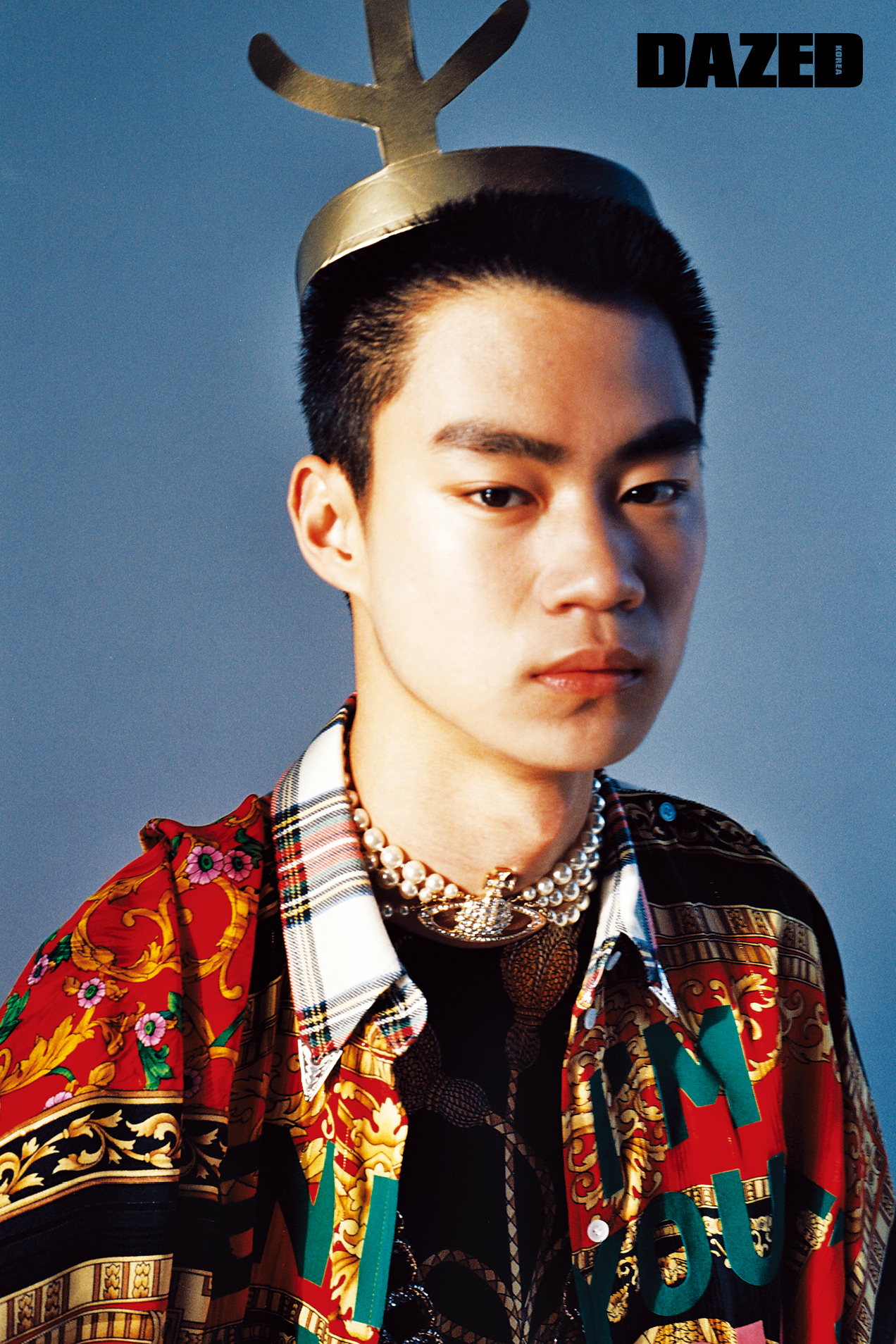 오알비 버클 장식의 진주 네크리스는 비비안 웨스트우드(Vivienne Westwood), 신라의 왕관을 본뜬 왕관은 사진가가 며칠을 만든 것.