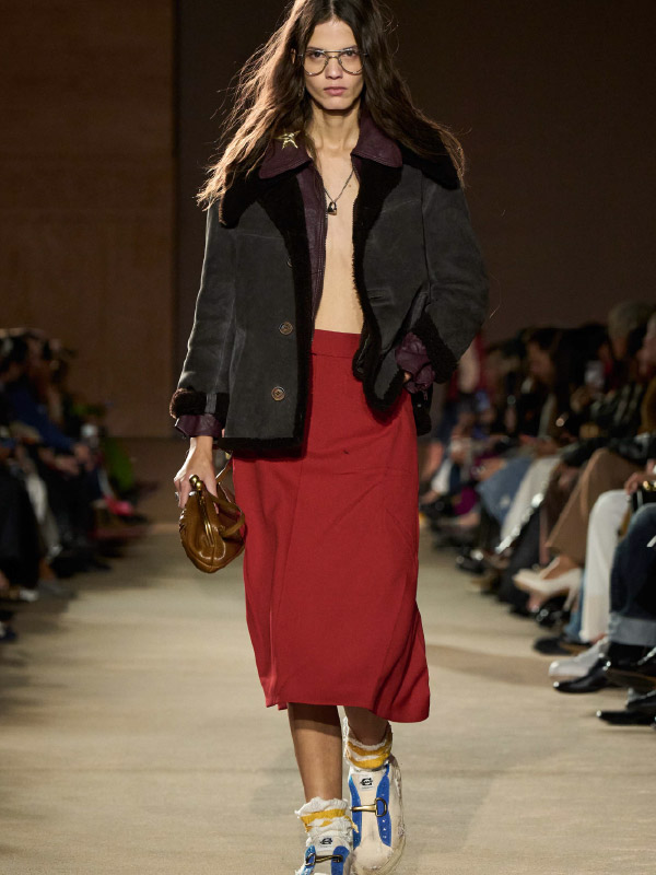 오즈의 마법사 모티프의 크루넥 톱과 와이드 팬츠, 스니커즈는 모두 루이 비통(Louis Vuitton).