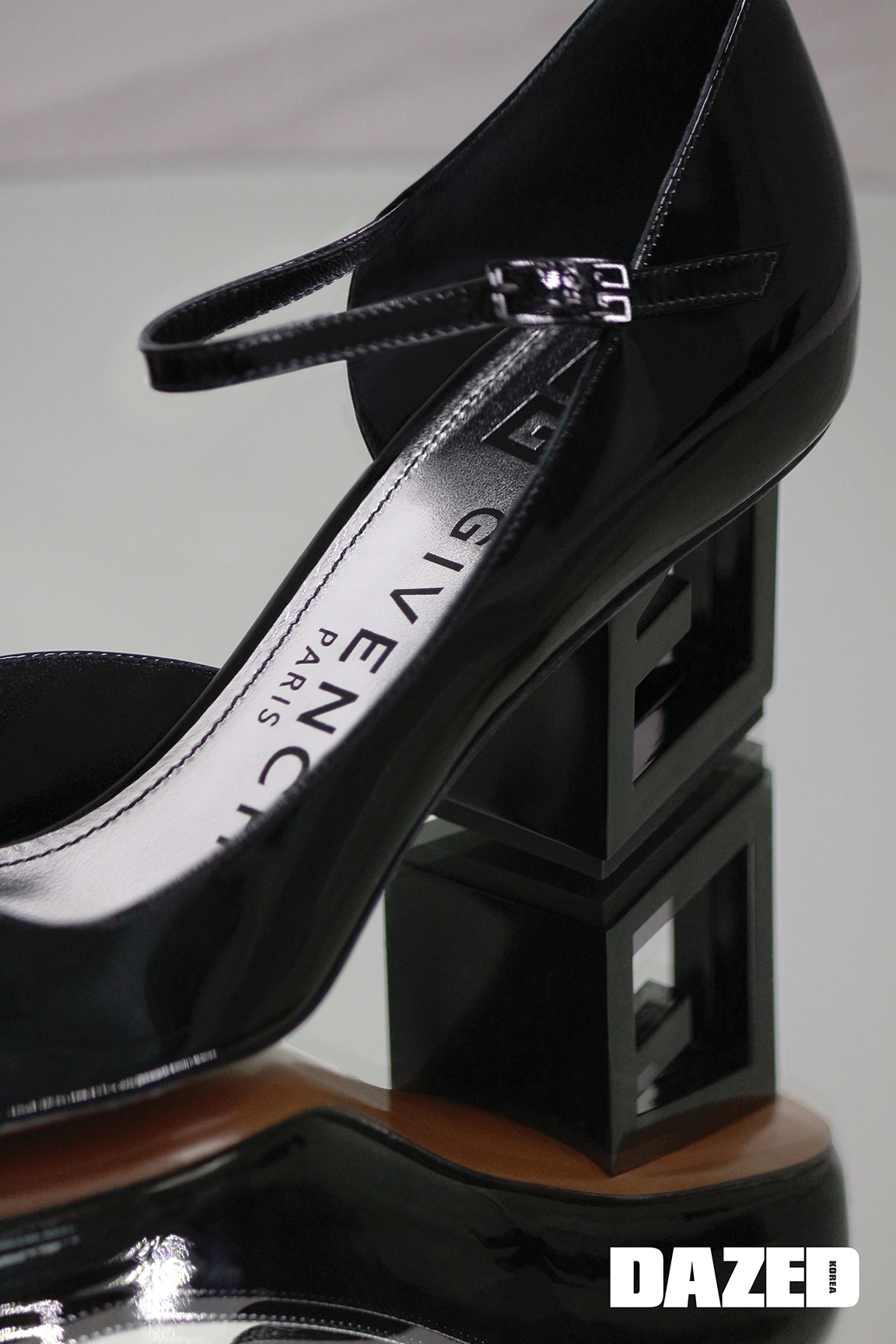 지방시 로고를 음각한 굽이 특징인 메리제인 힐은 지방시(Givenchy).