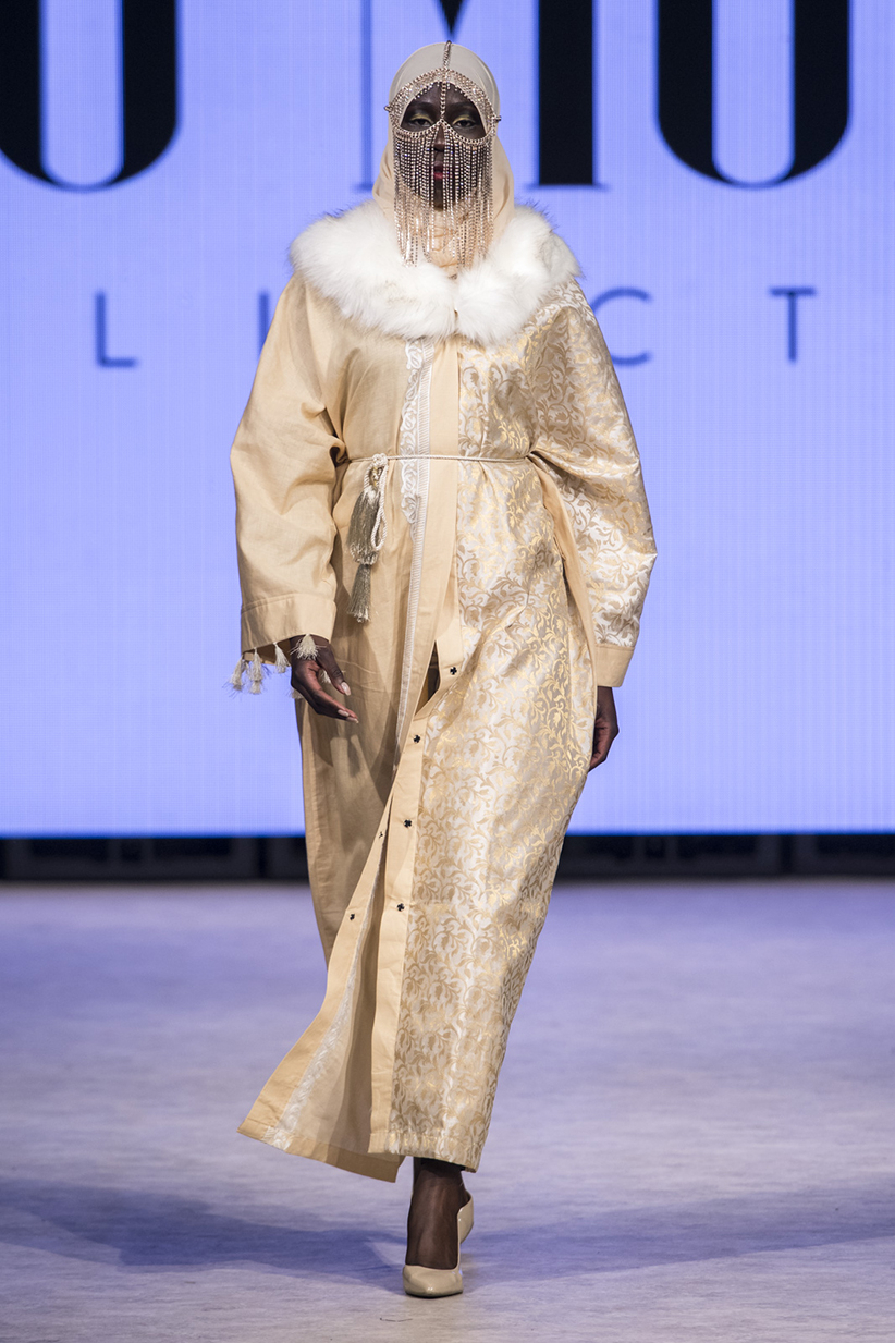 눈은 마음의 창이라고 했던가. 화려한 헤드피스와 가려진 얼굴 사이로 보석처럼 빛나는 눈동자를 맞닥뜨리자, 신비로운 호기심이 생겼다. 수 모다 컬렉션의 옷을 입으면 나도 신비로운 분위기를 풍길 수 있을까.