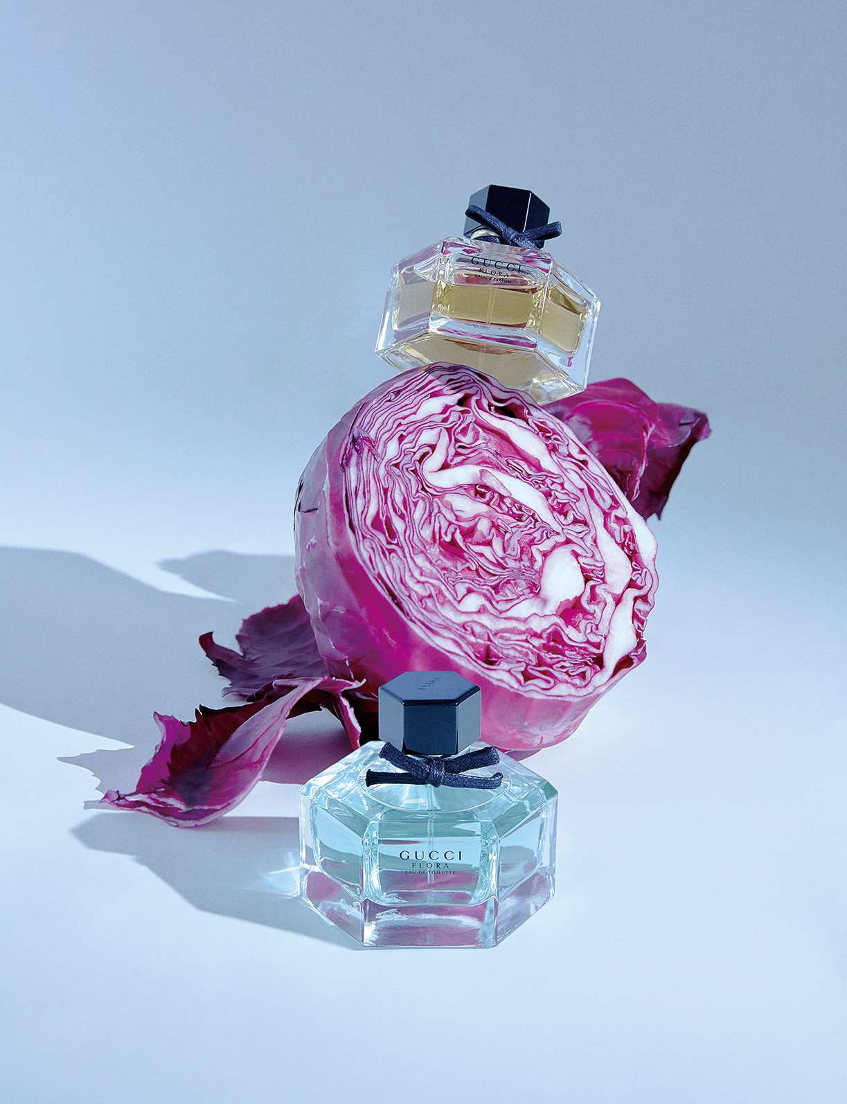 장미와 계화꽃을 베이스로 깊고 진한 향을 완성한 플로럴 프루티 계열의 플로라 바이 구찌 오 드 퍼퓸, 같은 계열의 향으로 보다 가벼운 느낌을 주는 플로라 바이 구찌