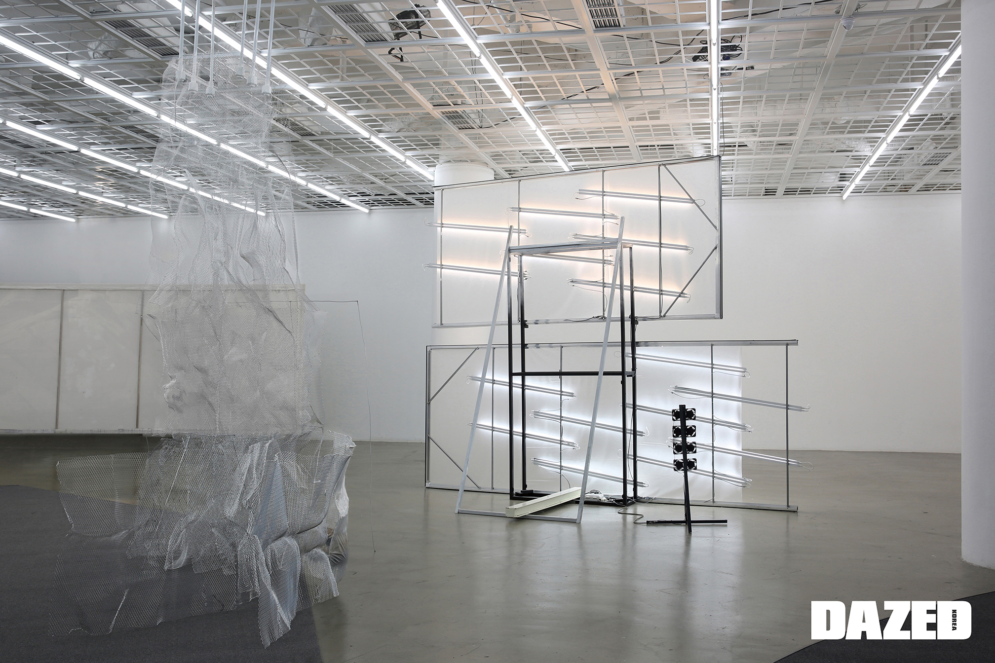 보통의 화이트 큐브가 아니다. 누군가 에르메스 매장의 문을 열어준다. 고급스러운 상품이 진열된 곳을 지나 순백의 나선형 계단을 통해 지하 로 내려오면 어둡고 묵직한 레스토랑 ‘마당’이 나온다. 그 길을 온전히 통과해야만 여기에 닿을 수 있다. 전시를 만나기 전, 공간은 이미 이상 한 방식으로 작동하고 있는 거다. 이곳을 평이한 전시장으로 여기면 나 는 분명 공간에 지고 만다. 여러 성격을 부여하는 유연한 방식으로 움 직이는 편이 나았다. 한 2주일 이곳으로 출퇴근하며 뭔가를 만들었다. 그러니까 지금 이 공간에 있는 작품은 이 공간이 아니라면 굳이 만들어 지지 않았을지 모른다.