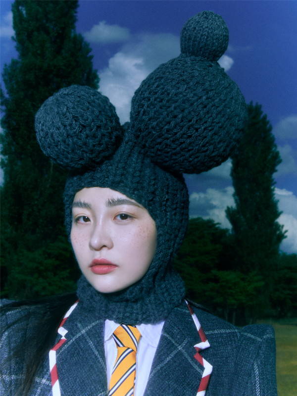 겉에 입은 무톤 재킷과 이너로 입은 셔츠, 네크리스와 이어링은 모두 로에베(Loewe), 레이어드한 더플코트는 윈도우 00(Window00), 트렌치코트를 변형한 쇼트 재킷은 유돈초이(Eudon Choi), 데님 팬츠와 선글라스는 셀린느(Celine), 니트 비니는 8 몽클레르 팜 엔젤스(8 Moncler Palm Angels).