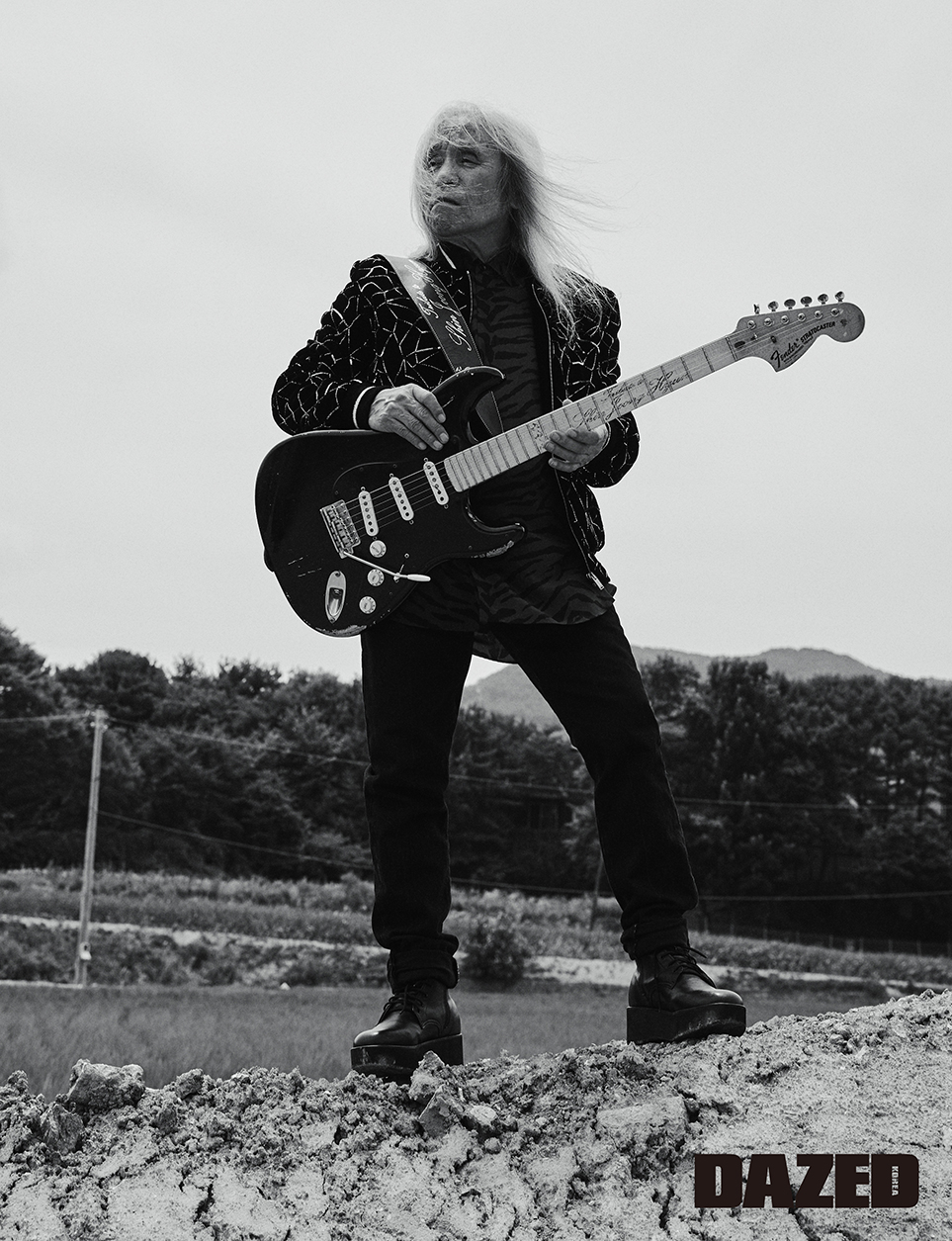그렇죠. 기타 제작사 펜더Fender가 2009년 제게 헌정해준, 세상에 하나뿐인 기타가 있어요. 세계적인 기타리스트에게만 주는 건데, 받았으니 답례 차원에서 이 기타를 중심으로 한 음반을 만들어 보여준 거예요. 신곡 두 곡과 리메이크 여섯 곡을 담았어요. 사실 모두 신곡이나 다름없어요. ‘빗속의 여인’을 제외하면 발표한 적은 있지만 나오자마자 사장된 노래니까. 어쨌든 이번 앨범은 기타가 주인공이고, 록 음악의 특성을 살리기 위해 다시 만든 셈이죠.