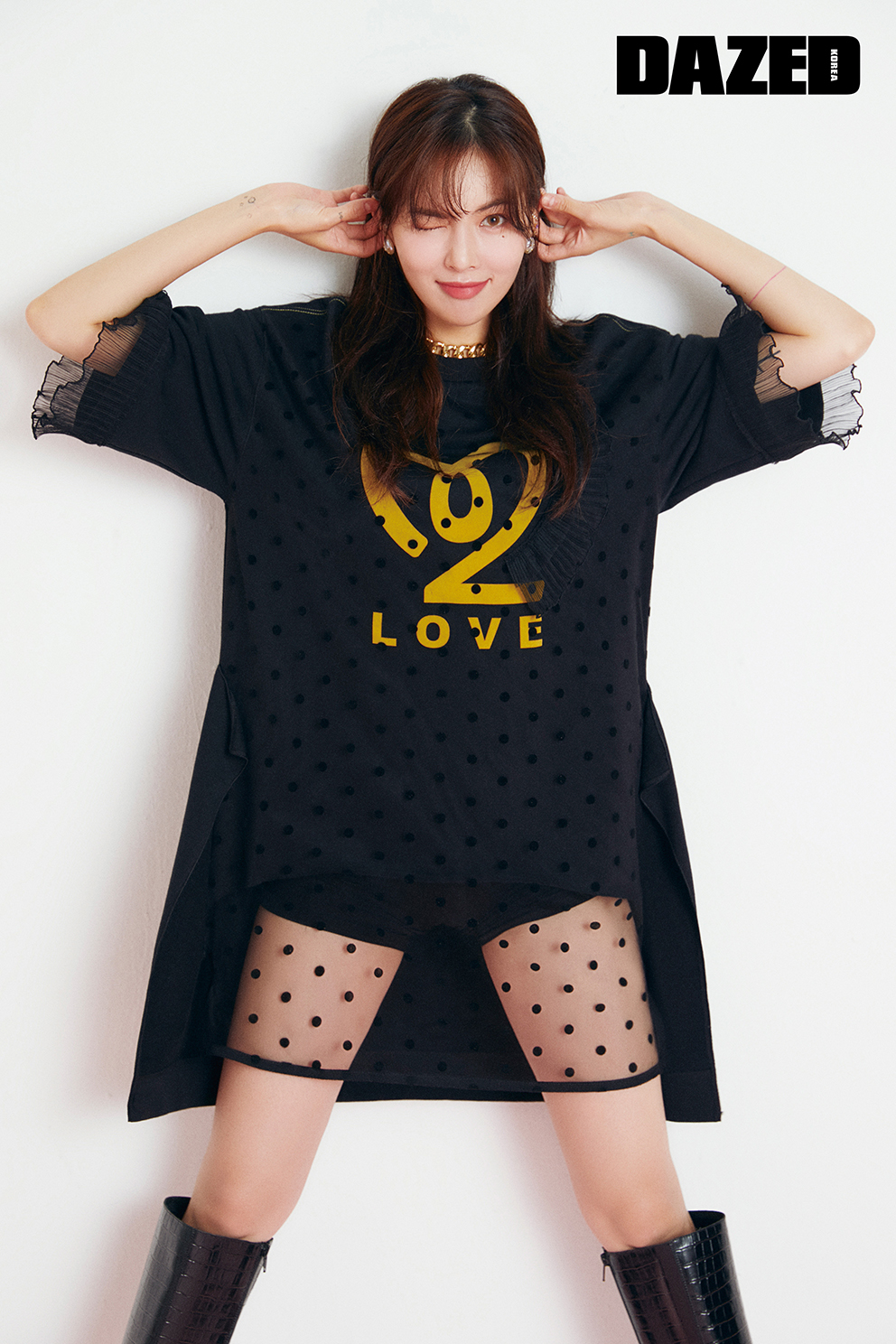이어링은 블랙뮤즈(Black Muse), 네크리스는 스타일리스트 소장품, 슈즈는 제프리 켐벨(Jeffrey Campbell).