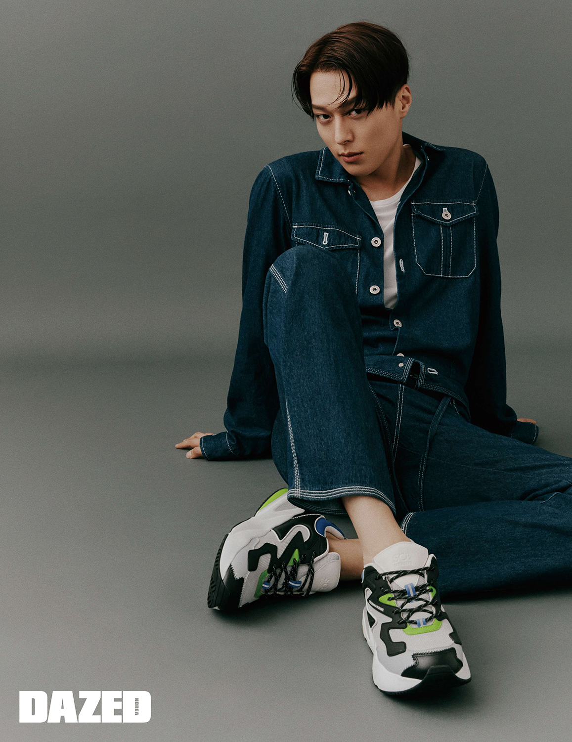 데님 점프슈트는 노앙(Nohant), 애플비 스니커즈는 슈콤마보니(Suecomma Bonnie), 이너로 입은 티셔츠는 스타일리스트의 것.