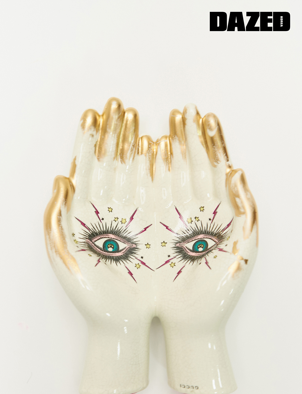 눈을 그려 넣은 손 모양 오브제는 구찌 데코(Gucci Decor).