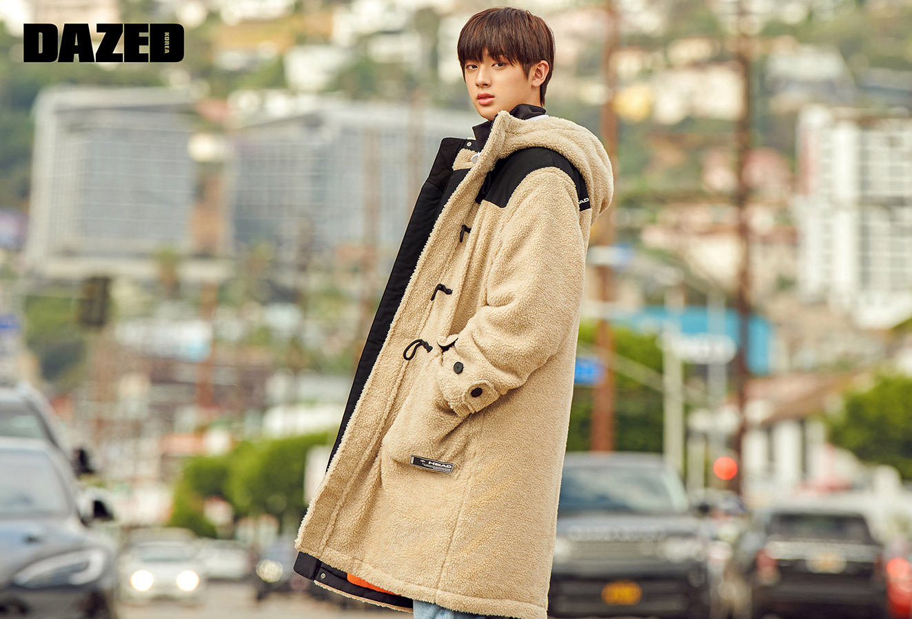 컬리 싱글 코트와 케플러 맨투맨, 스크래퍼 벨크로 스니커즈는 모두 헤드(Head), 팬츠는 인스턴트서플라이(instantsupplyco), 이너로 입은 티셔츠와 양말은 스타일리스트의 것.