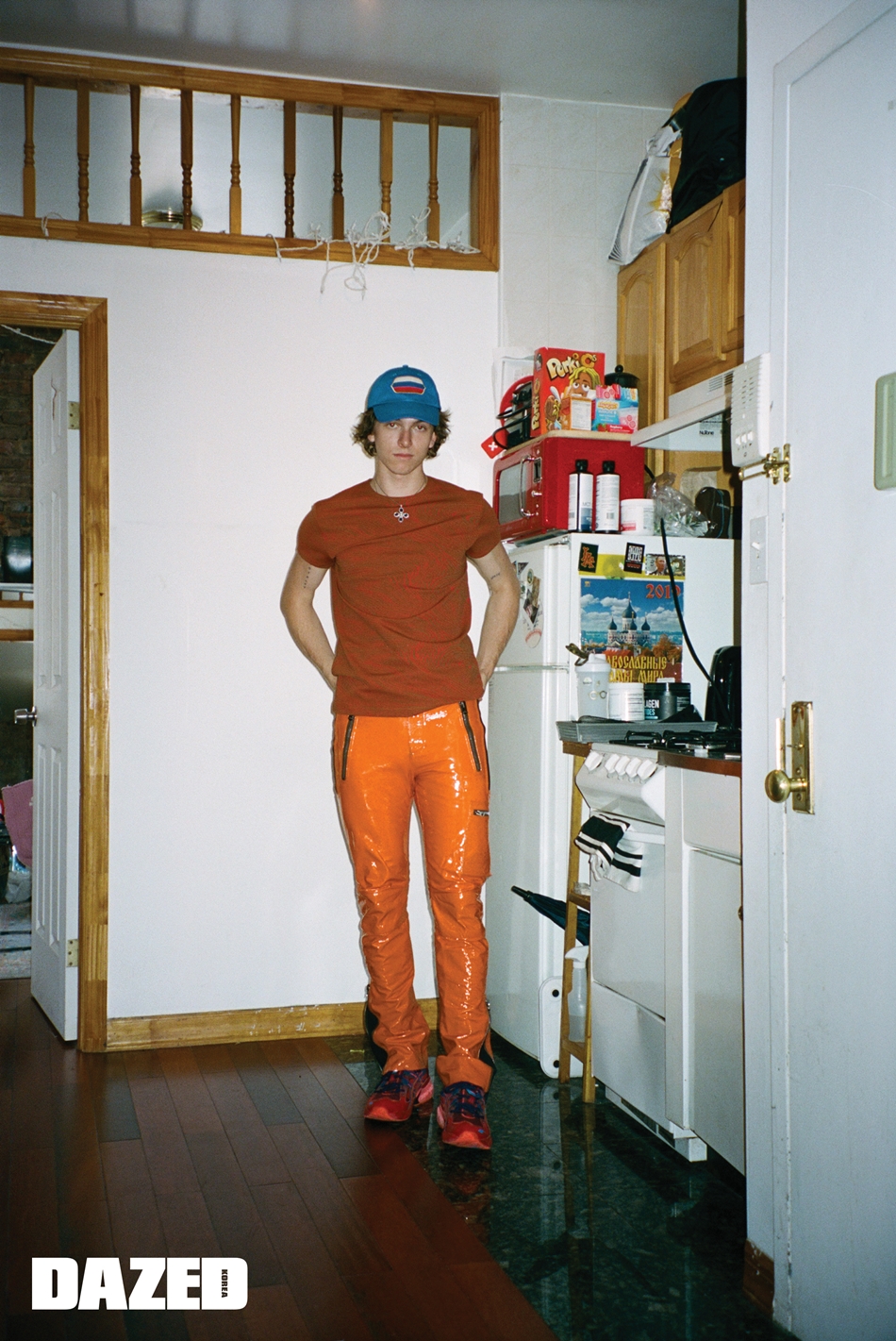 티셔츠와 팬츠는 아크네 스튜디오(Acne Studios), 모자와 신발은 와이엇의 것.