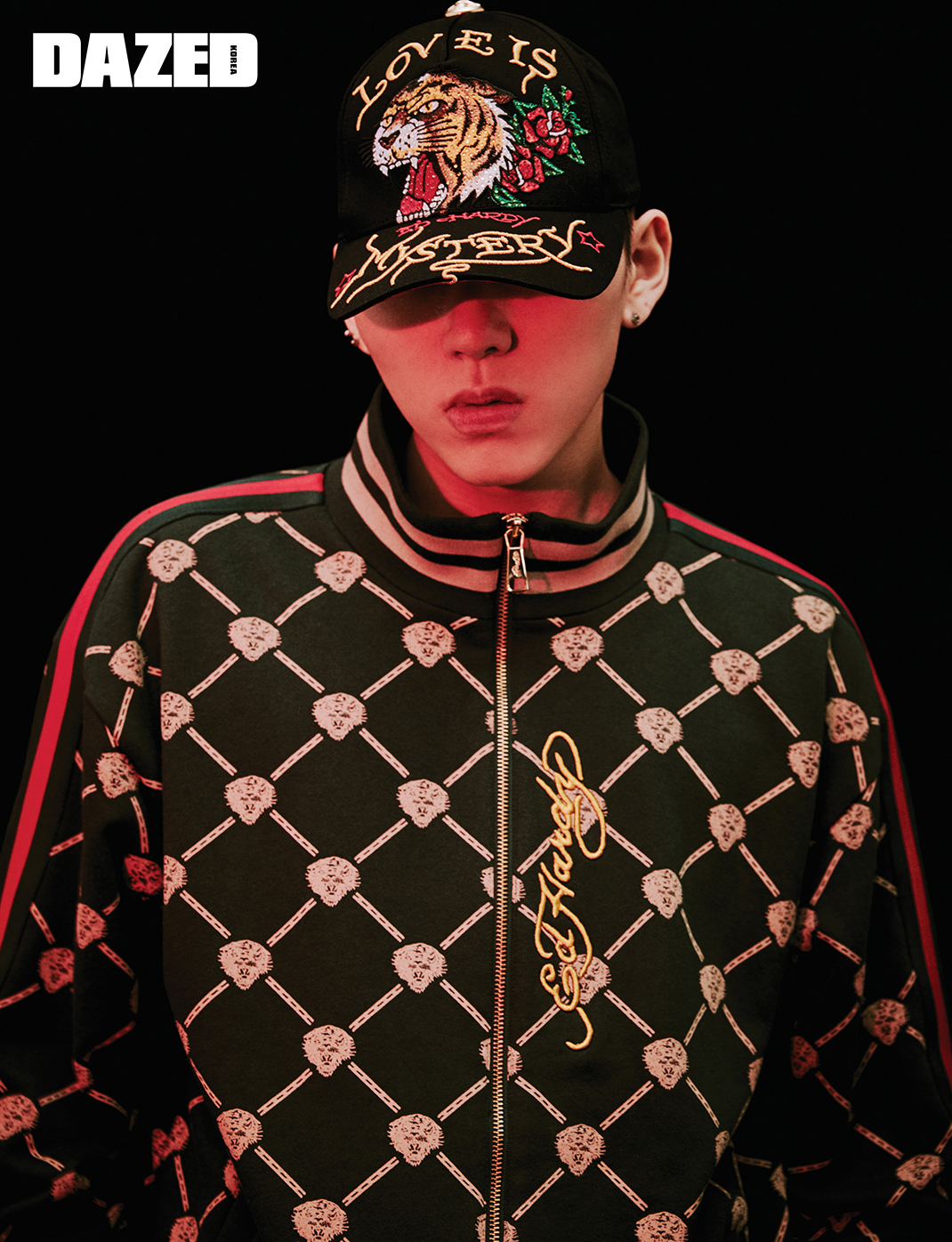 트랙 재킷과 캡은 에드하디(Ed Hardy).