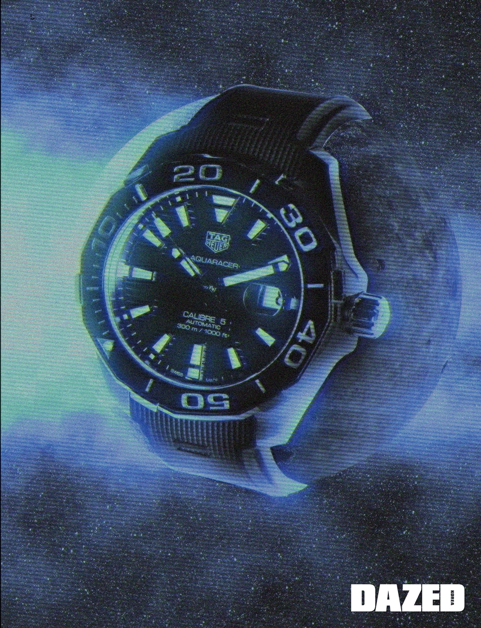 깊은 바닷속에서도 정확한 시간을 확인할 수 있는 야광 마커 인덱스와 핸즈가 특징인 아쿠아레이서 300M 칼리버 5 오토매틱 43mm 워치는 태그호이어(TAG Heuer).