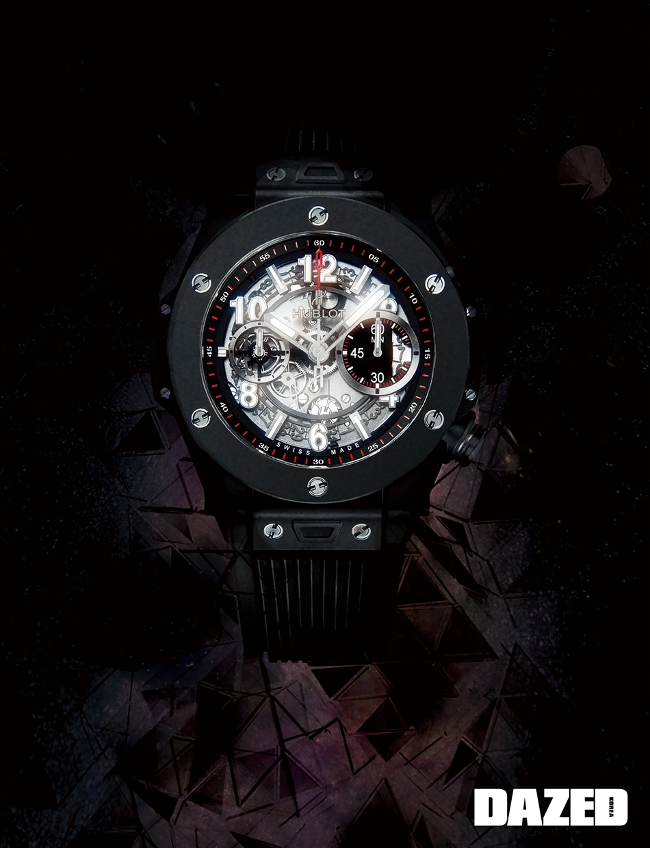 매트한 블랙 세라믹 베젤이 고급스러움을 더하고, 퀵 체인지 시스템으로 손쉽게 밴드를 교체할 수 있는 빅뱅 유니코 블랙 워치는 위블로(Hublot).