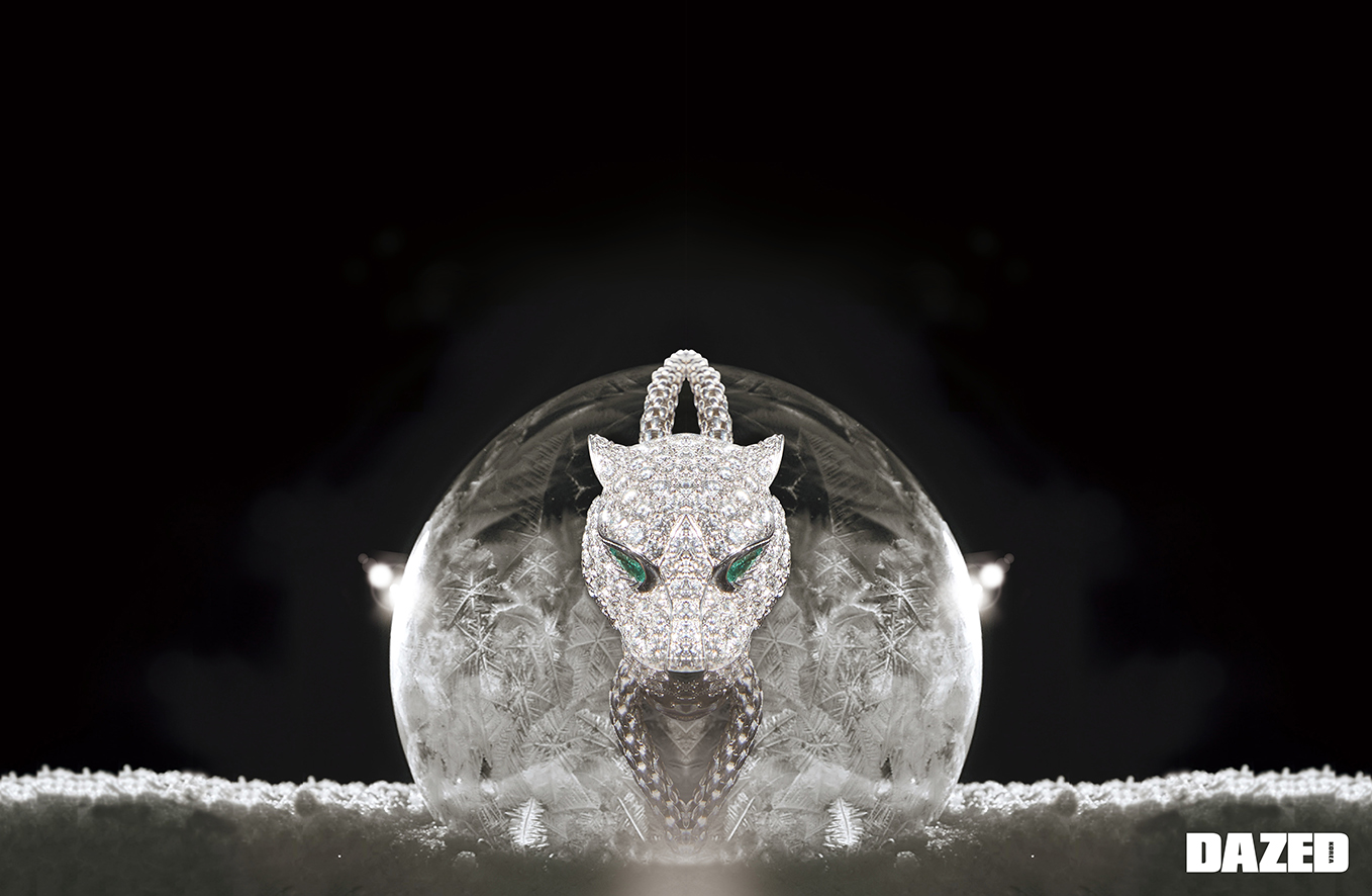 표범이 입에 고리를 물고 있는 디자인의 브레이슬릿은 까르띠에(Cartier).