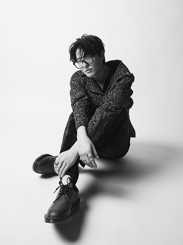 코트와 탈착 가능한 스카프, 이너로 입은 톱, 팬츠, 워커는 모두 디올 맨(Dior Men).
