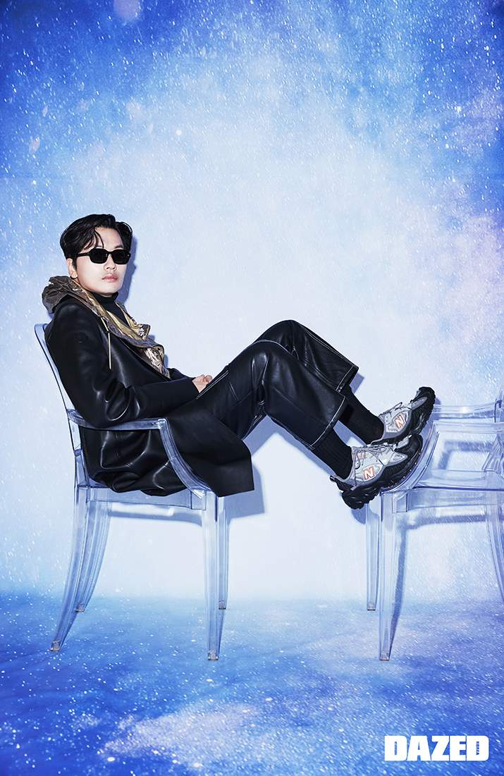 레더 코트는 6 몽클레르 1017 알릭스 9SM(6 Moncler 1017 ALYX 9SM), 아노락 재킷은 이자벨 마랑(Isabel Marant), 이너로 입은 톱은 스테판 슈나이더 by 아티지(Stephan Schneider by Artage), 레더 팬츠는 앤더슨벨(Andersson Bell), 선글라스는 프라다 by 룩소티카(Prada by Luxottica), ML703 스니커즈는 뉴발란스(New Balance), 양말은 스타일리스트의 것.