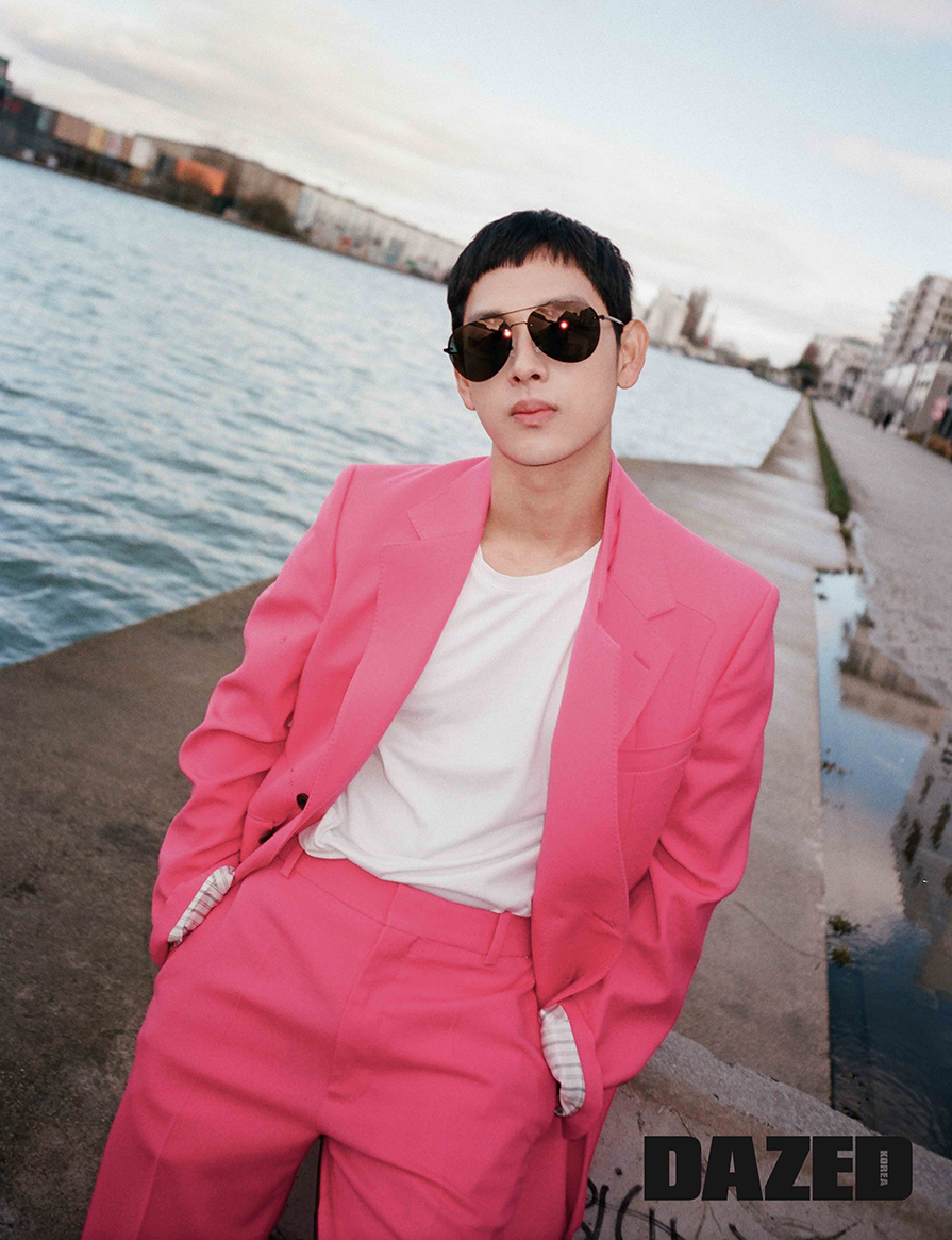 슈트는 알렉산더 맥퀸(Alexander McQueen), 선글라스는 휴고 보스(Hugo Boss), 티셔츠는 스타일리스트의 것.