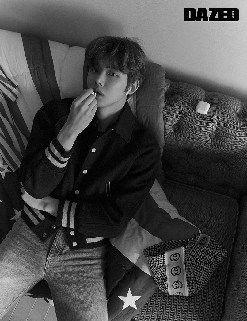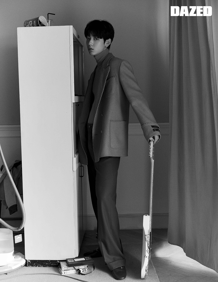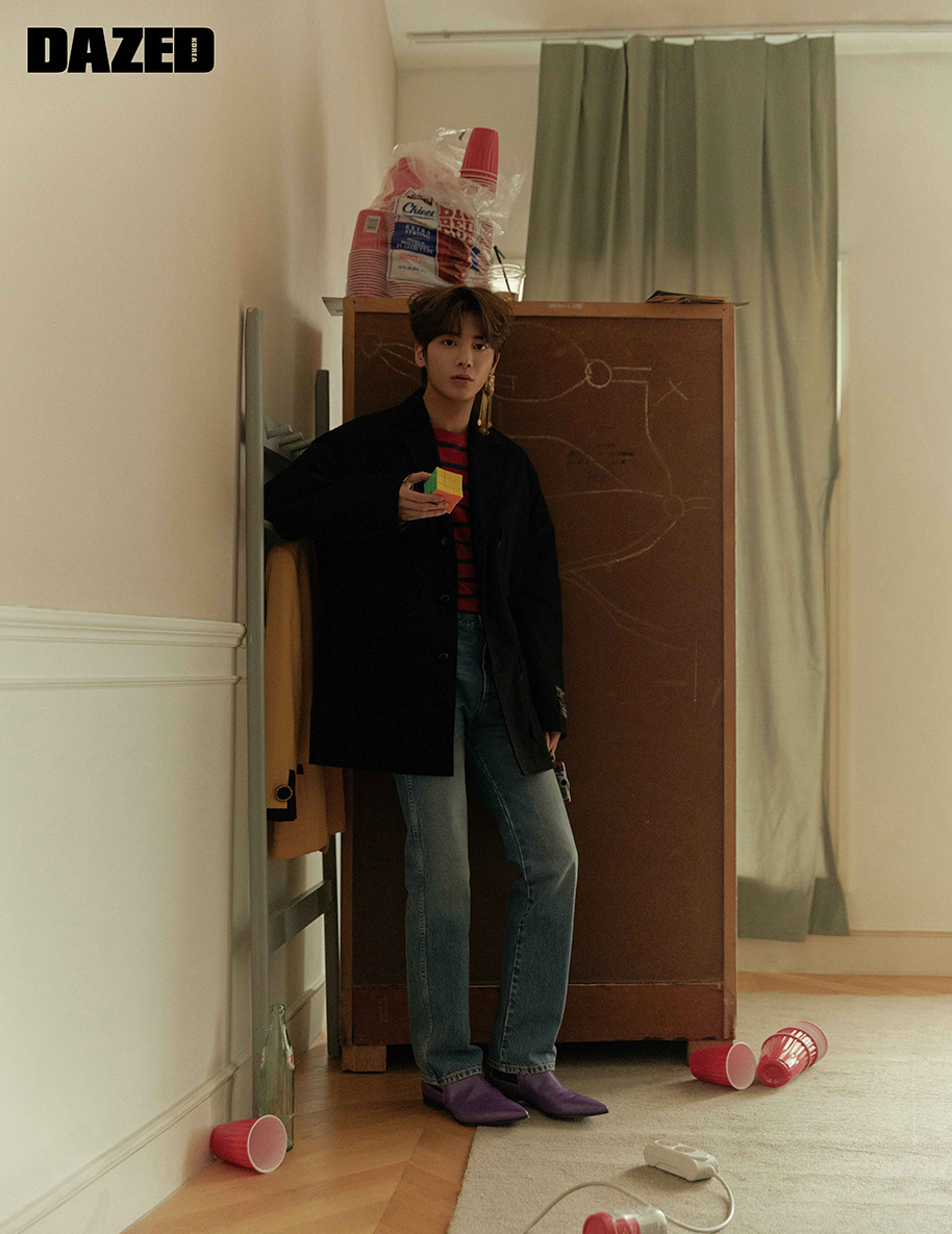 범규가 입은 슈트는 에르메네질도 제냐 XXX(Ermenegildo Zegna XXX), 톱은 오디너리 피플(Ordinary People), 슈즈는 펜디(Fendi), 모자는 구찌(Gucci). 태현이 입은 코트는 김서룡 옴므(Kimseoryong Homme), 톱과 팬츠, 슈즈는 모두 보테가 베네타(Bottega Veneta). 휴닝카이가 입은 재킷과 팬츠, 슈즈는 모두 디올 맨(Dior Men).