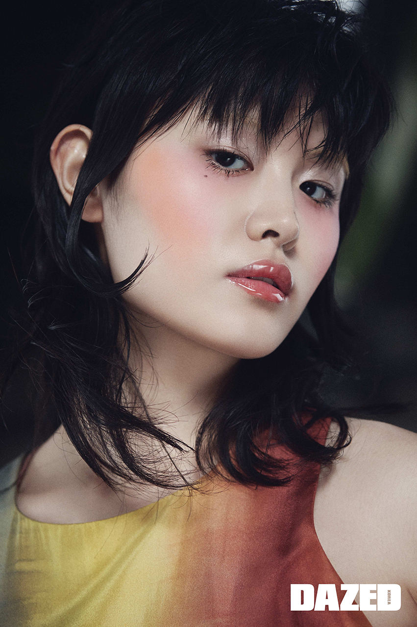 촉촉하게 표현한 피부 위에 구찌 뷰티 봄므 아 레브르 2 노 모어 오어키즈를 양 볼에 넓게 발라 꽃잎으로 물든 듯한 핑크빛 치크를 표현한다. 눈두덩에는 구찌 뷰티 봄므 아레브르 1조 슬린 클레어를 발라 촉촉한 질감을 살린다. 입술은 구찌 뷰티 루즈 아 레브르 사탱 골디 레드를 오버 립으로 진하게 바른 뒤 구찌 뷰티 봄므 아 레브르 립밤 2 노 모어 오어키즈를 덧발라 물기를 머금은 듯한 촉촉한 레드 립을 완성한다.
