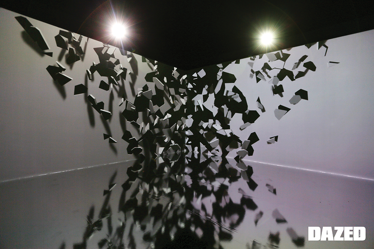 방탄소년단과 커넥트라는 키워드를 작가로서 시각적으로 어떻게 표현할지 고민했어요. 그러다 방탄소년단의 안무에 관심이 생겼고, 저만의 방식으로 표현하기로 했죠. 자주 협업하는 안무가이자 한예종 현대무용과 신창호 교수님과 이야기를 나누며 발전시켰어요. 현대미술을 보러 온 사람, 무용수, 아미가 봐도 완성도 높은 안무 영상을 보여주는 게 목표였어요. 그 외에 그래픽 요소를 통해서도 큐브 안에 펼쳐질 영상이 새로운 차원에 온 것처럼 느껴지길 바랐어요. 끝없이 다른 차원으로 넘어가는 생경한 시각 효과죠.