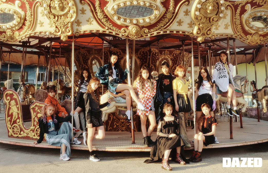 예나가 입은 크롭트 재킷은 비뮈에트(Bmuet(te)), 안에 입은 톱은 푸시 버튼(Push Button), 데님 팬츠는 아디다스 오리지널스(adidas Originals), 스니커즈는 아식스 스포츠스타일(ASICS SportStyle). 나코가 입은 미니드레스는 마크 제이콥스(Marc Jacobs), 베스트는 푸시 버튼(Push Button), 스니커즈는 아식스 스포츠스타일(ASICS SportStyle). 민주가 입은 지브라 프린트 풋볼 저지는 나이키(Nike), 안에 입은 우주 프린트 가운은 진존잼(Jinjonjam), 부츠는 스튜어트 와이츠먼(Stuart Weitzman), 쇼츠는 에디터의 것. 사쿠라가 입은 스트라이프 디테일 톱은 한킴(Hankim), 스커트는 유저(Youser), 스니커즈는 푸마(Puma), 양말은 에디터의 것. 원영이 입은 재킷과 스커트는 MSGM by 한스타일닷컴(MSGM by Hanstyle.com), 슈즈는 디올(Dior), 안에 입은 톱과 양말은 에디터의 것. 유리가 입은 체크 재킷과 스커트는 채뉴욕(Chaenewyork), 워커는 닥터마틴(Dr. Martens). 유진이 입은 레인코트는 마린 세르 by 분더샵(Marine Serre by BOONTHESHOP), 안에 입은 프린트 톱은 진존잼(Jinjonjam), 데님 쇼츠는 베트멍 by 분더샵(Vetements by BOONTHESHOP), 부츠는 스튜어트 와이츠먼(Stuart Weitzman). 채연이 입은 슬리브리스 프릴 드레스는 고엔제이(Goen.j), 프린트 워커는 닥터마틴(Dr. Martens), 워머는 에디터의 것. 채원이 입은 랩 톱은 라코스테 라이브(Lacoste L!ve), 레더 스커트와 레이어드한 프린트 팬츠는 기준(Kijun). 혜원이 입은 레터링 톱은 리복(Reebok), 안에 입은 드레스는 릭 오웬스(Rick Owens), 글러브는 한킴(Hankim), 워머는 에디터의 것. 히토미가 입은 미니드레스는 프레드 페리(Fred Perry), 워커는 닥터마틴(Dr. Martens). 은비가 입은 레터링 재킷은 MM6 메종 마르지엘라 by 육스닷컴(MM6 Maison Margiela by YOOX.com), 안에 입은 톱은 프레드 페리(Fred Perry), 쇼츠는 알렉산더 왕(Alexander Wang), 스니커즈는 푸마(Puma), 양말은 에디터의 것.