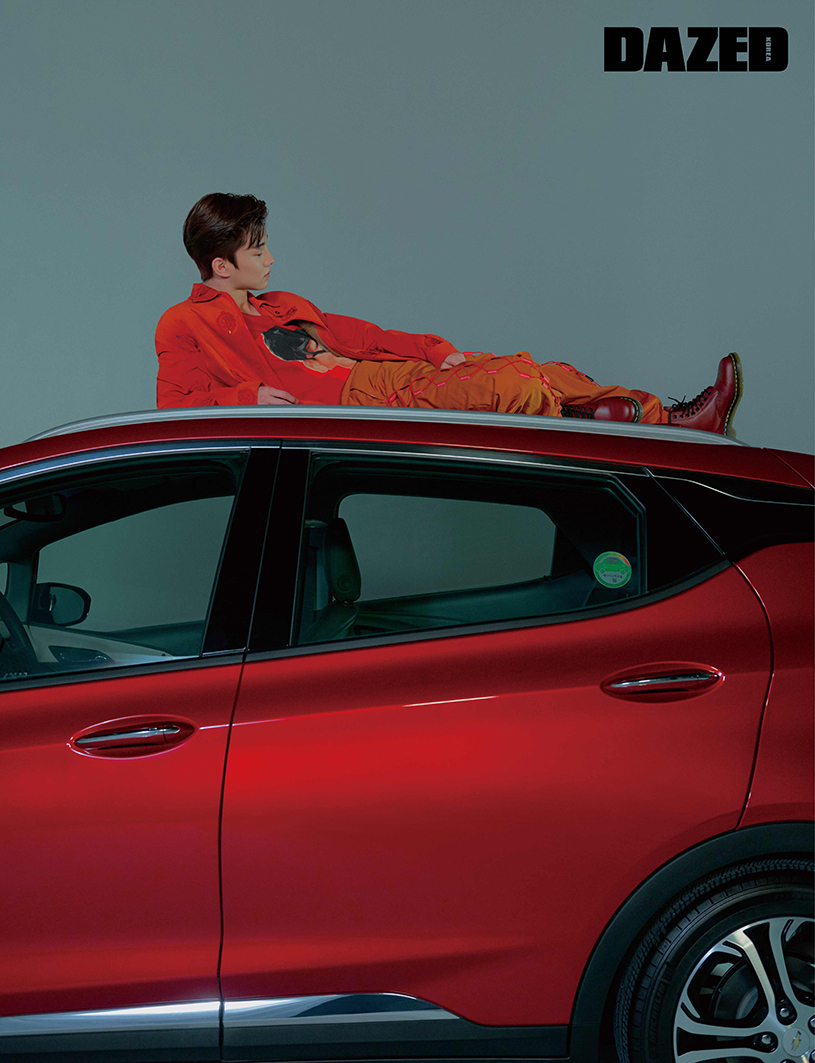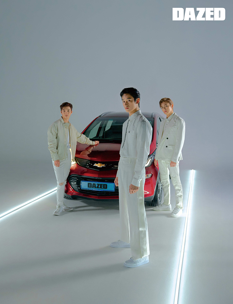 쉐보레의 2020년형 전기차 볼트 EV와 더보이즈의 큐, 주연, 현재가 만나 펼친 우아한 국면. 새 시대를 여는 자동차와 소년들의 만남은 결코 우연이 아니다.