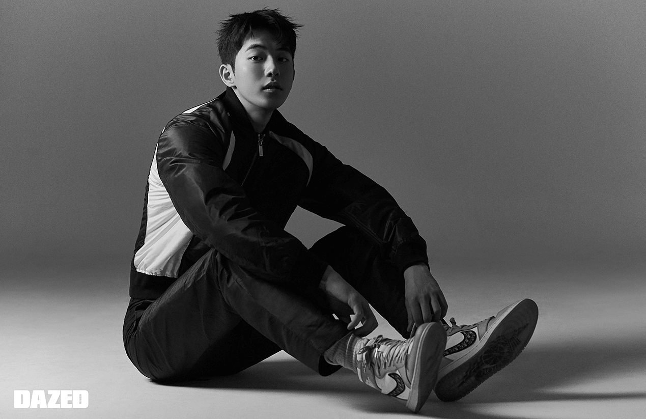 보머 재킷과 팬츠, 양말, 에어 디올 하이톱 스니커즈는 모두 디올 맨(Dior Men).