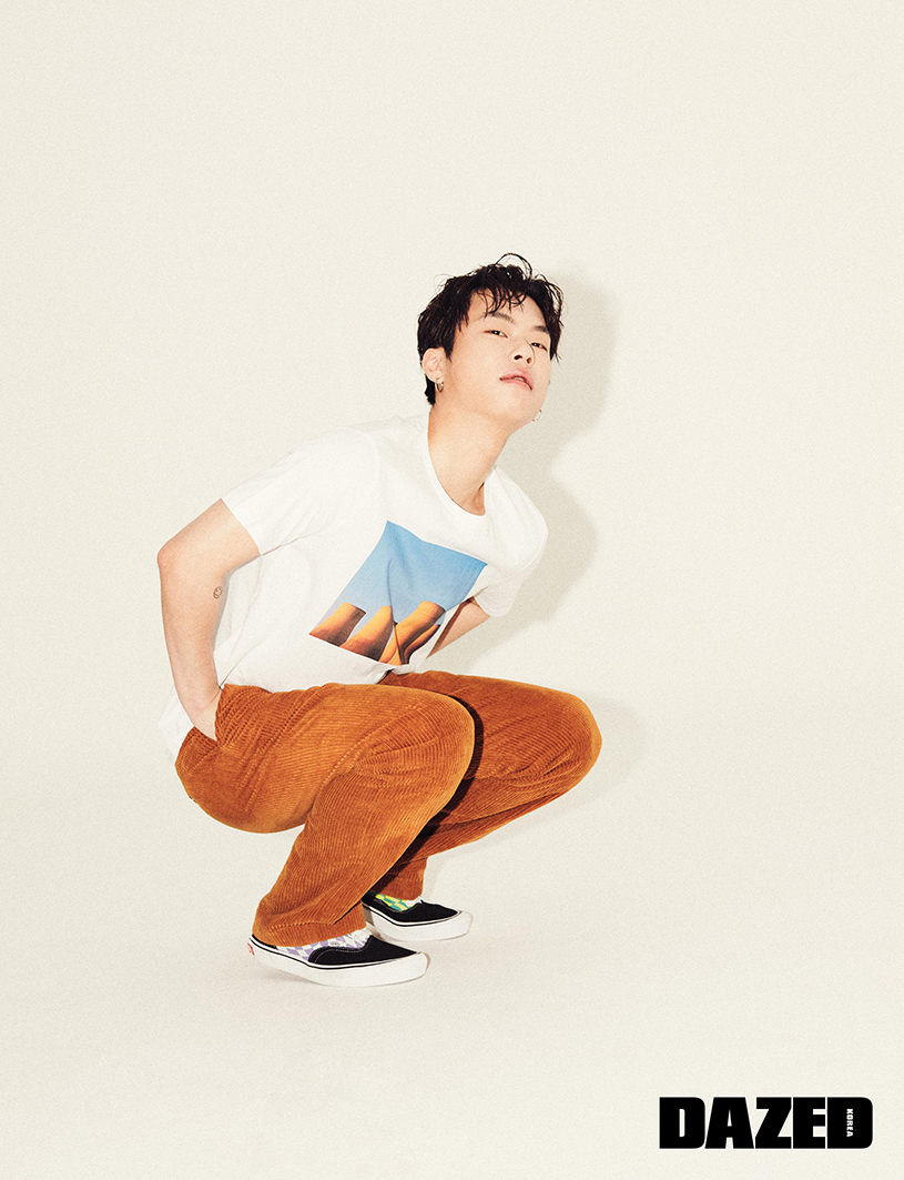 티셔츠는 아이디어 by 하이츠 스토어(Idea by Heights Store), 슈즈는 반스(Vans), 이어링은 영흠의 것, 팬츠는 에디터의 것.
